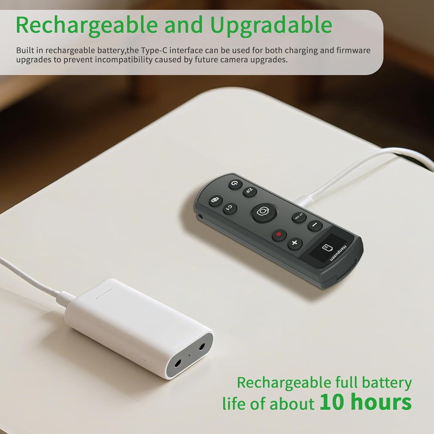- No Need to Replace Battery: The upgraded USB-C interface allows for direct charging of the remote control, eliminating the need to worry about running out of battery and replacing the battery. A single charge can last for 10 hours, meeting your daily needs. Pressing the shutdown button can save power. This interface can also be used for firmware upgrades to prevent future camera upgrades from causing incompatibility.