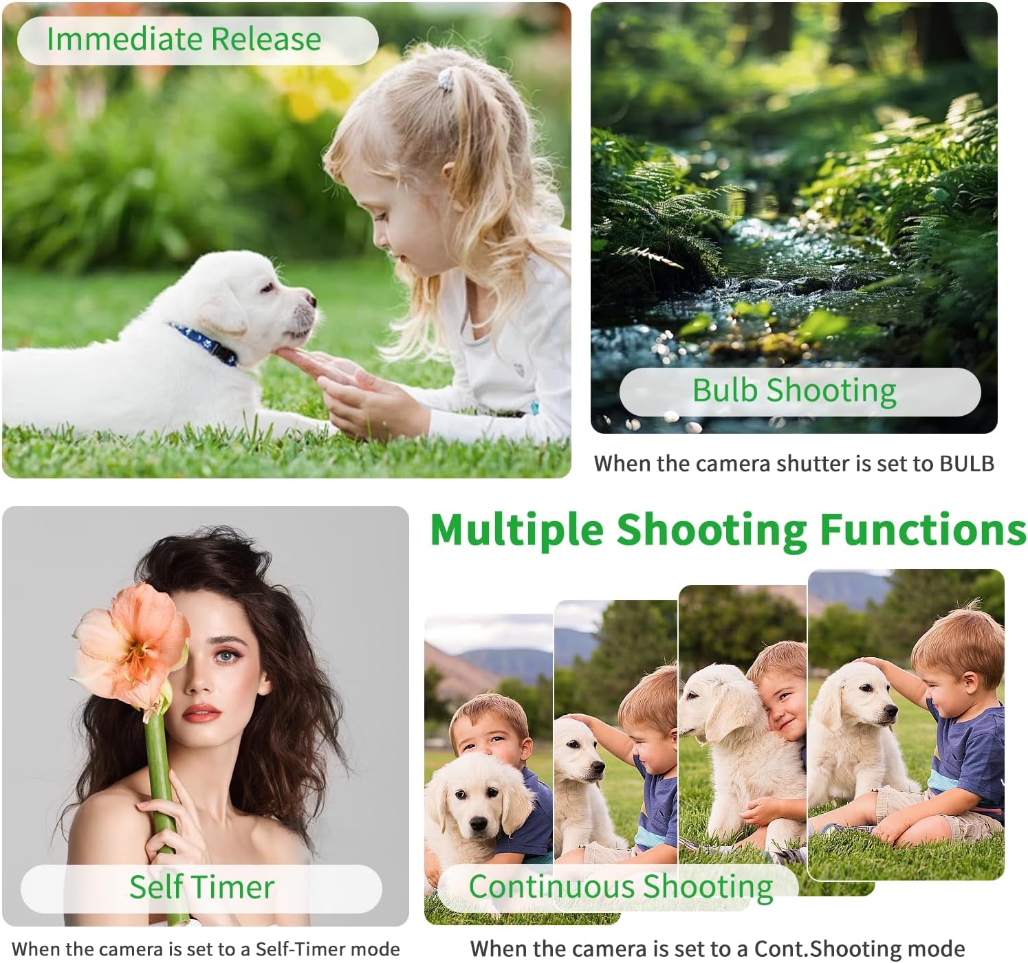 - Shooting still photos and videos: This remote control supports shooting still photos, short videos, Bulb shooting, continuous shooting, self timer, 360 ° all-round remote control, with a remote control distance of up to 10m/32.8 feet. Please adjust the camera to the corresponding mode.