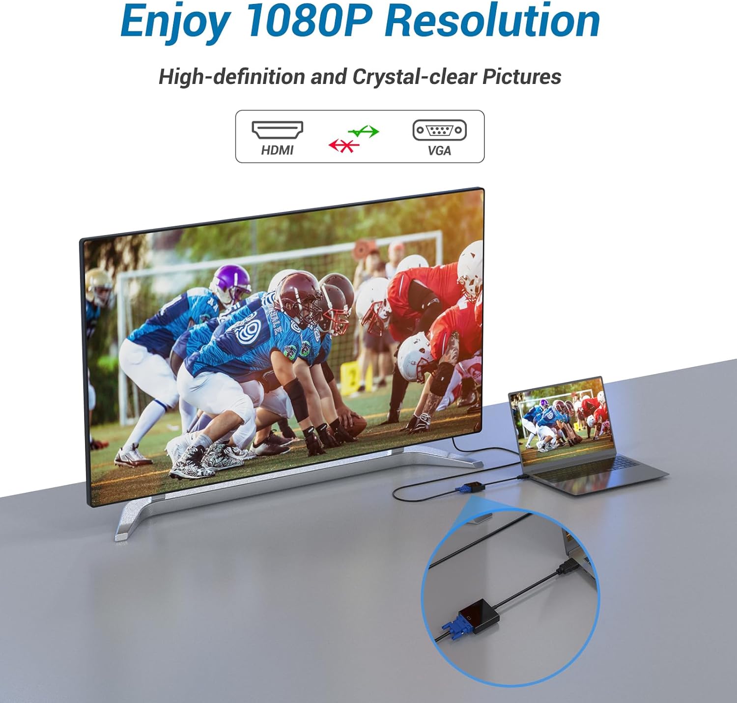 - 【Full HD Resolution】Supports up to 1080P full HD resolution, compatible with HD monitors, projectors, and traditional VGA devices. Whether for office documents, HD videos, or gaming graphics, it delivers clear visuals, meeting both home entertainment and commercial presentation needs.