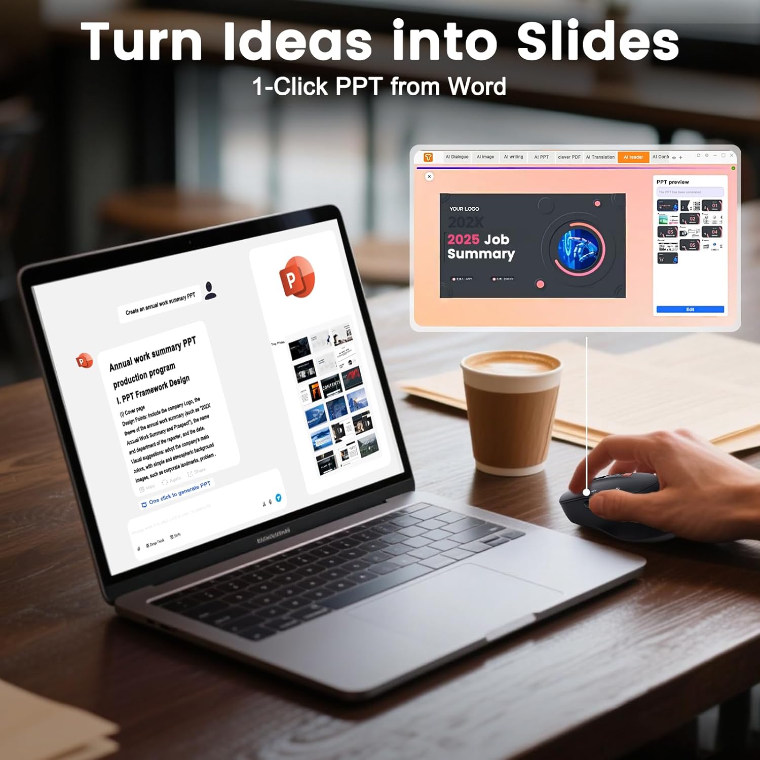 - 🖱️【Ai Mouse】:AI-Powered Productivity Boost– This AI Wireless Bluetooth Mouse integrates ChatGPT-enabled assistants to help draft emails, summarize notes, and even create AI-enhanced PowerPoint slides directly from your workflow.
