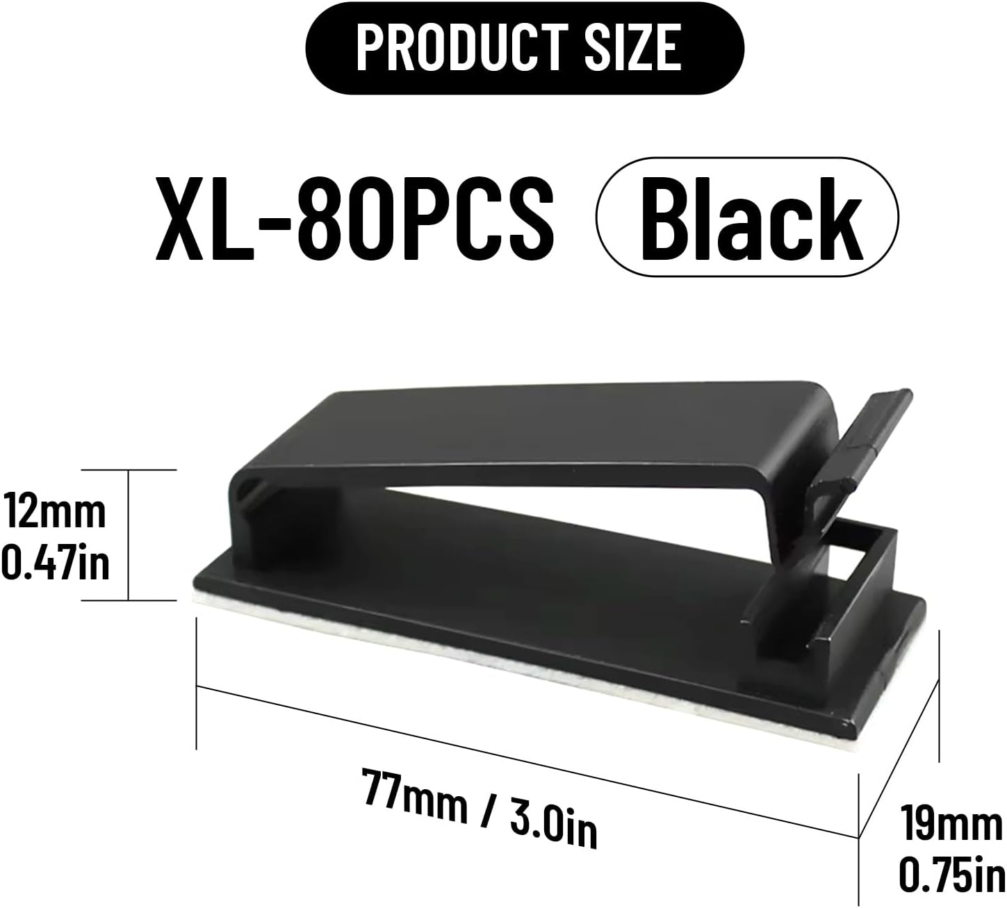 Adhesive Cable Clips Holder, Outdoor Light Clips, Black Cord Wire Clips, Sturdy Nylon Cord Wall Finisher Wire Clamp for Home, Car, Office Desk Wire Management (Black, XL-80 PCS)