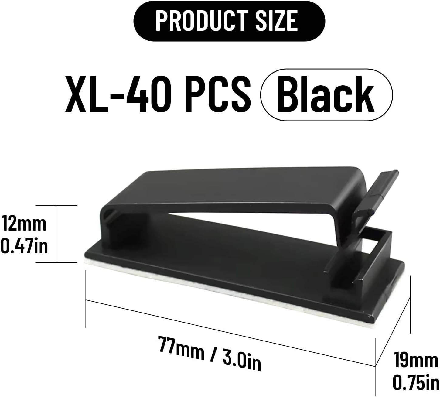 Adhesive Cable Clips Holder, Outdoor Light Clips, Black Cord Wire Clips, Sturdy Nylon Cord Wall Finisher Wire Clamp for Home, Car, Office Desk Wire Management (Black, XL-40 PCS)