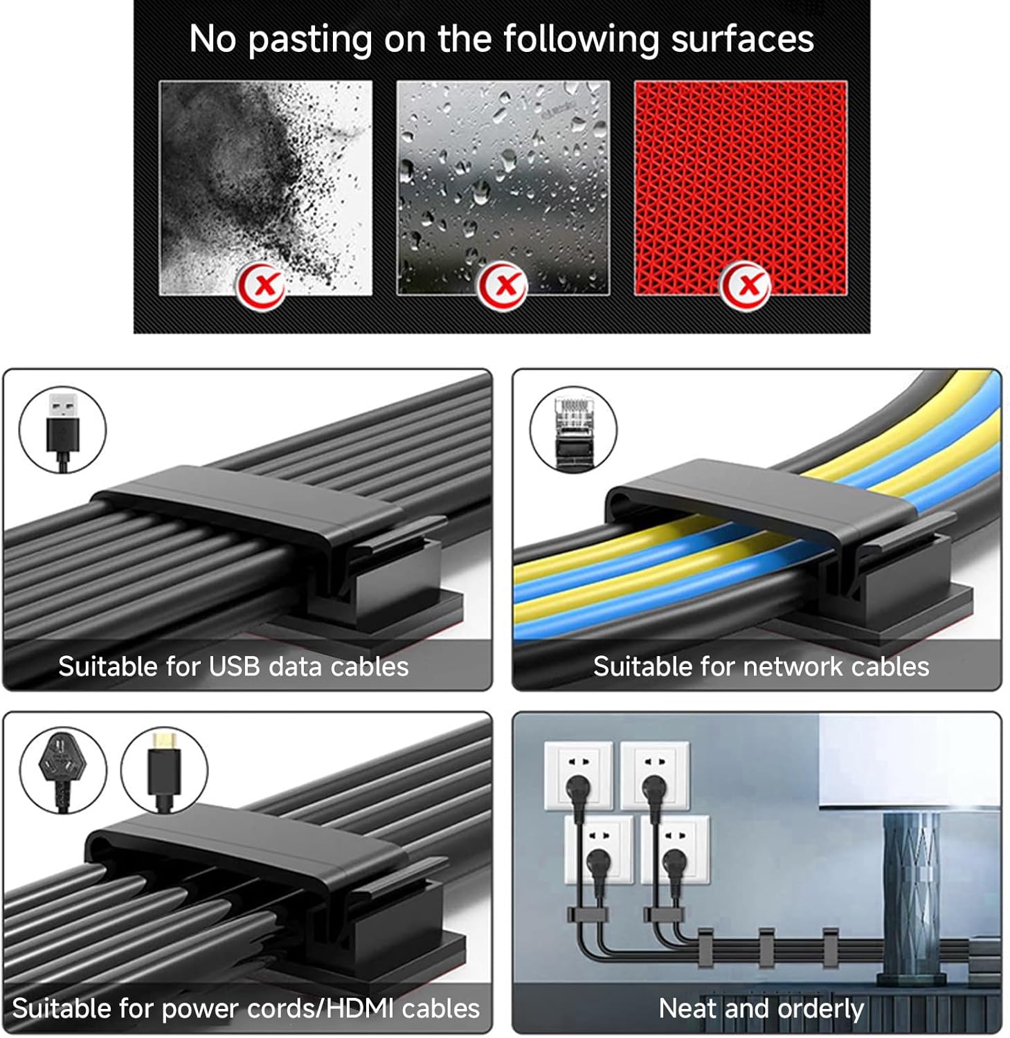- Easy to Use: Adhesive cable clips are easy to use and can be installed without the help of other auxiliary tools. When installing, you need to make sure that the installation exterior is dry and dust-free. Wire clips are not suitable for repeated use