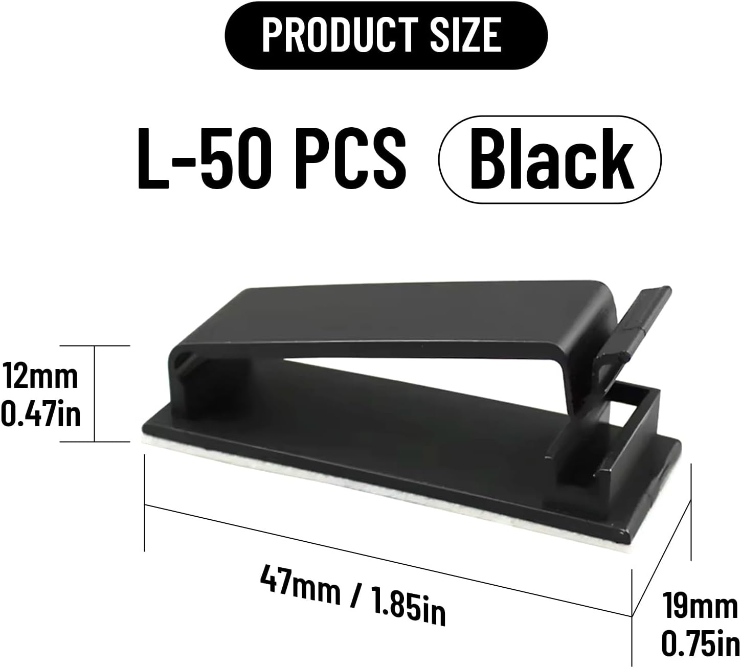 - Product Spec: Adhesive cable clips are available in 2 sizes, L (Base 2.1" x 0.75", inner diameter 1.55" x 0.25") and XL (Base 3" x 0.75", inner diameter 2.5" x 0.27"). Cable clips has 2 colors, black and white. You can choose 40, 50, 80 or 100 pieces