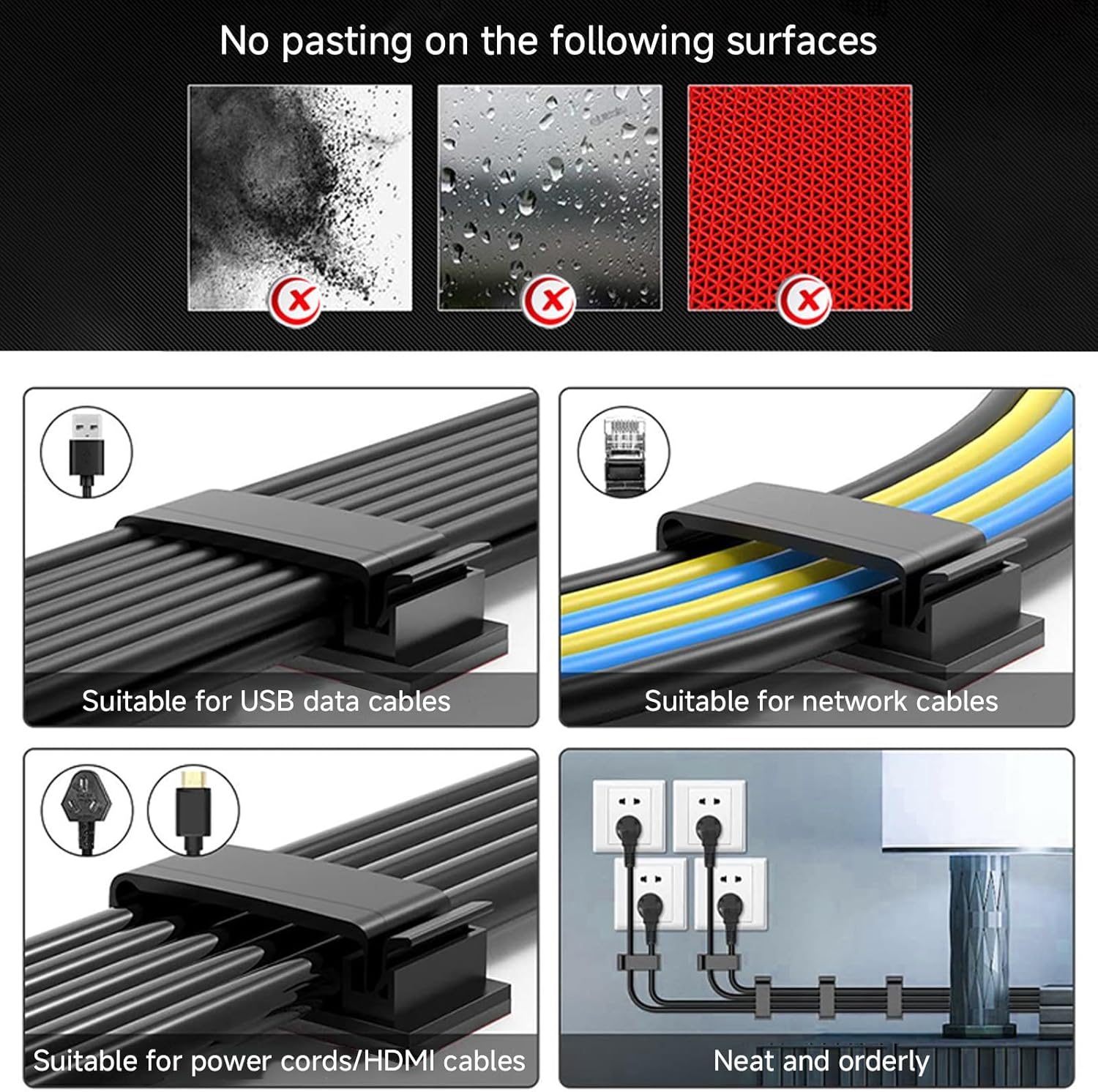 - Easy to Use: Adhesive cable clips are easy to use and can be installed without the help of other auxiliary tools. When installing, you need to make sure that the installation exterior is dry and dust-free. Wire clips are not suitable for repeated use