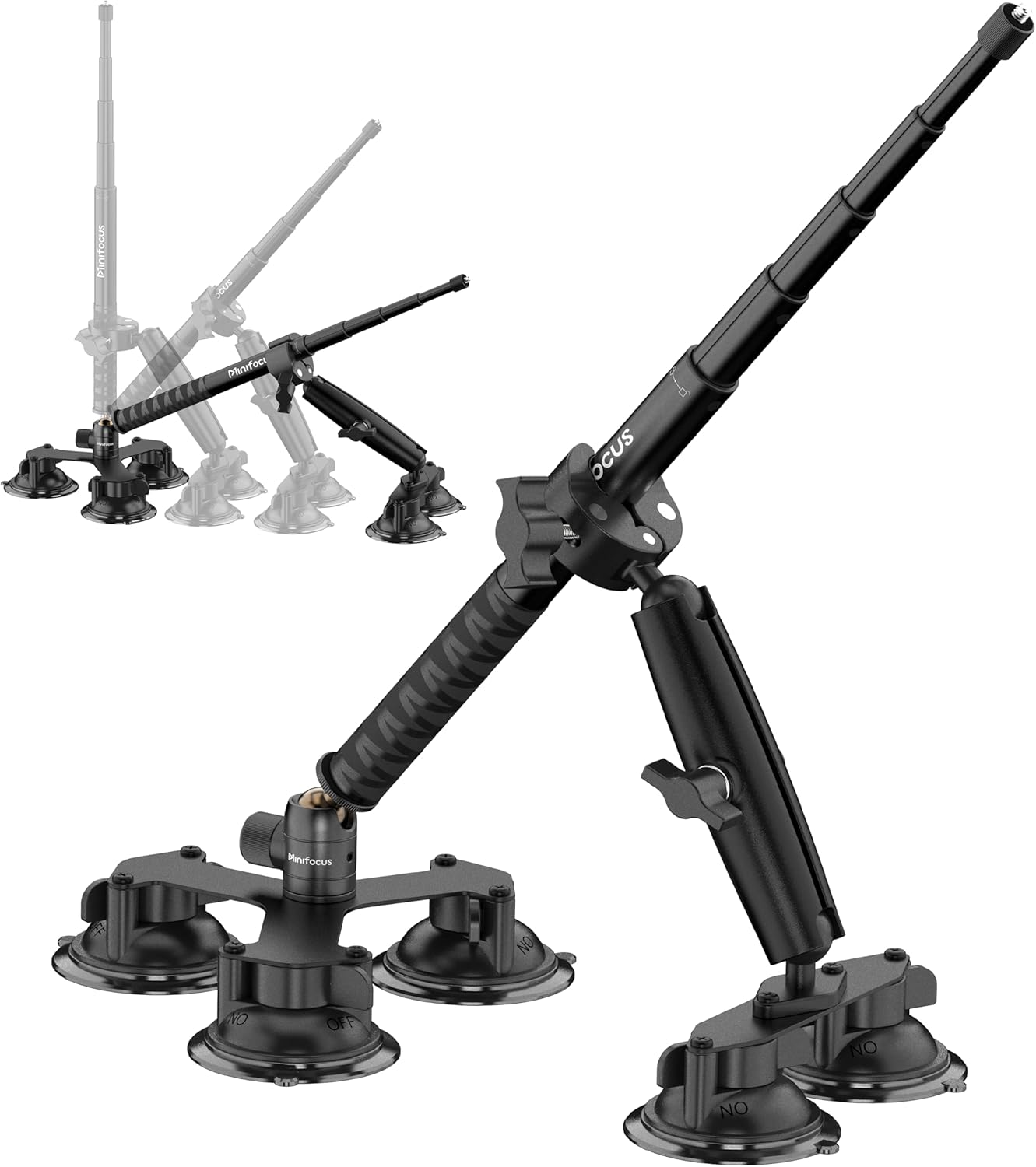 MINIFOCUS Suction Car Mount for Insta360 X5, X4, X3, 5 in 1 Suction Cup Camera Mount Kit with 2in1 Extension Pole, Compatible with Insta360 GoPro Action Camera(Includes 45inch Invisible Selfie Stick)
