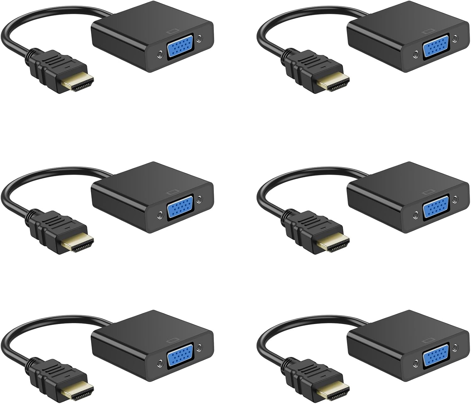Half-Dozen HDMI to VGA Adapter, 6PCS HDMI to VGA Unidirectional Converter (Male to Female), Compatible with Computers, desktops, laptops, PCs, Monitors, projectors, HD TVs