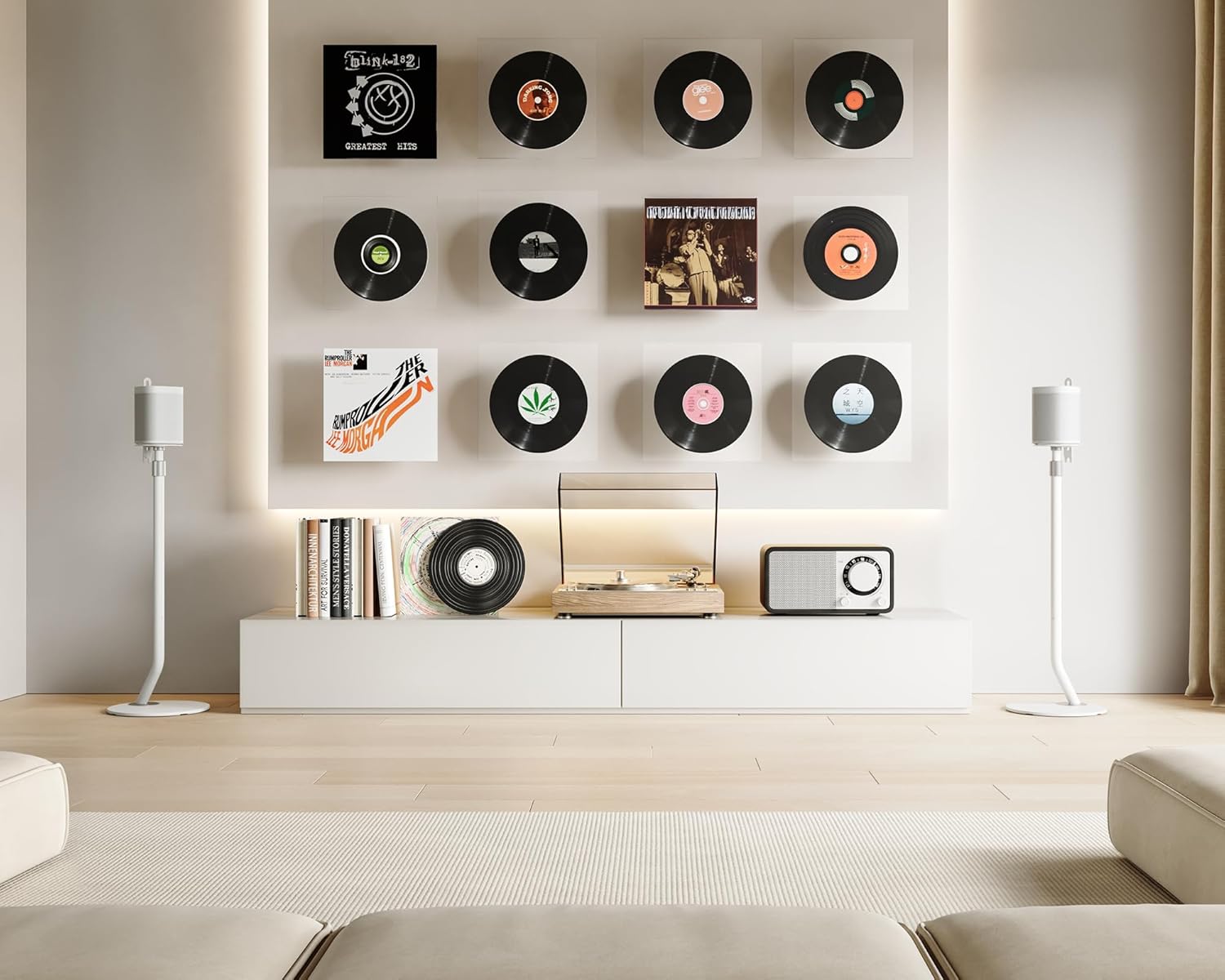 - 【Sleek & Stylish Design】 Modern minimalist speaker stand with electroplated accents—seamlessly complements your home decor.