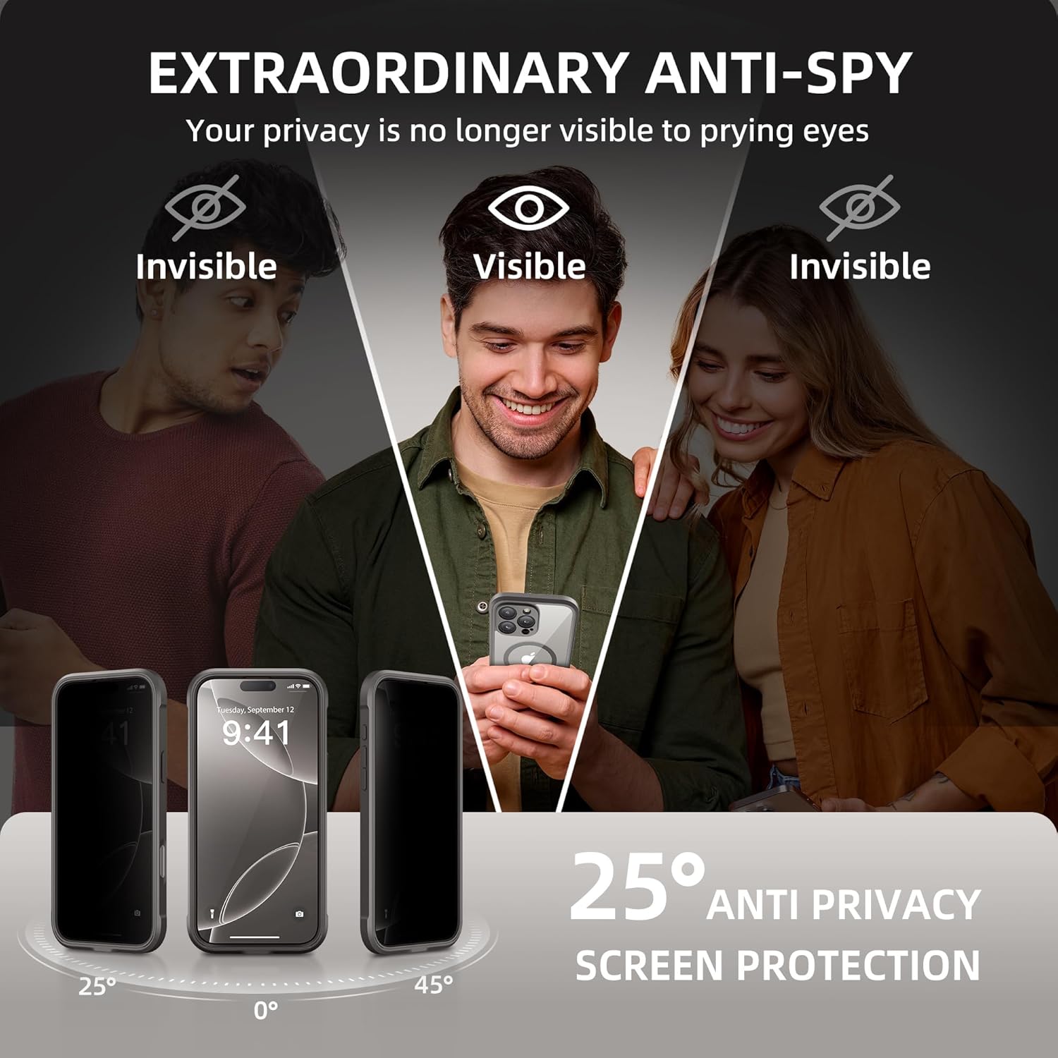 - [Built-in Privacy Screen Protector] BERFY for iPhone 16 Pro case with built-in privacy screen protector that protects your phone screen and personal information wherever you go, while also providing protection against drops and scratches