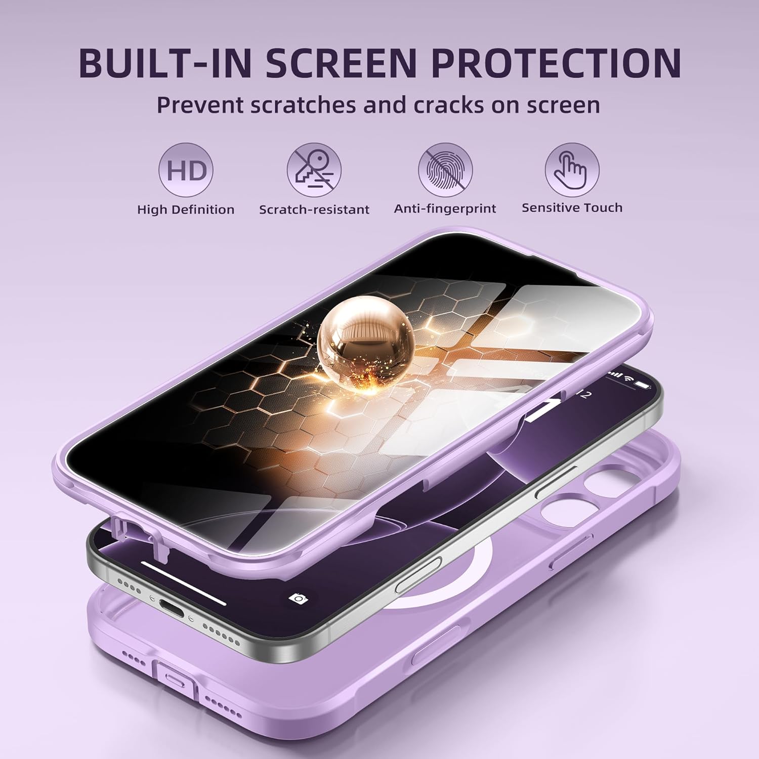 BERFY Magnetic for iPhone 16 Pro Case, Compatible with MagSafe, Built-in Privacy Screen Protector and Upgraded Camera Protection, Anti-Spy Full Body Shockproof Phone Case for 16 Pro 6.3", Light Purple