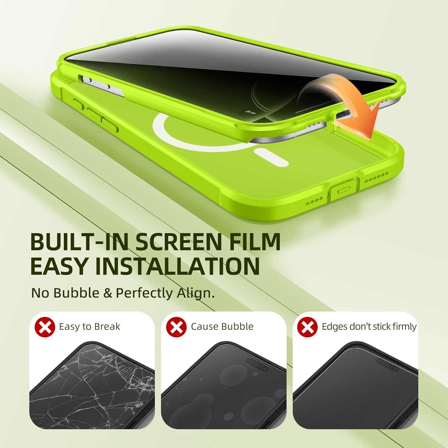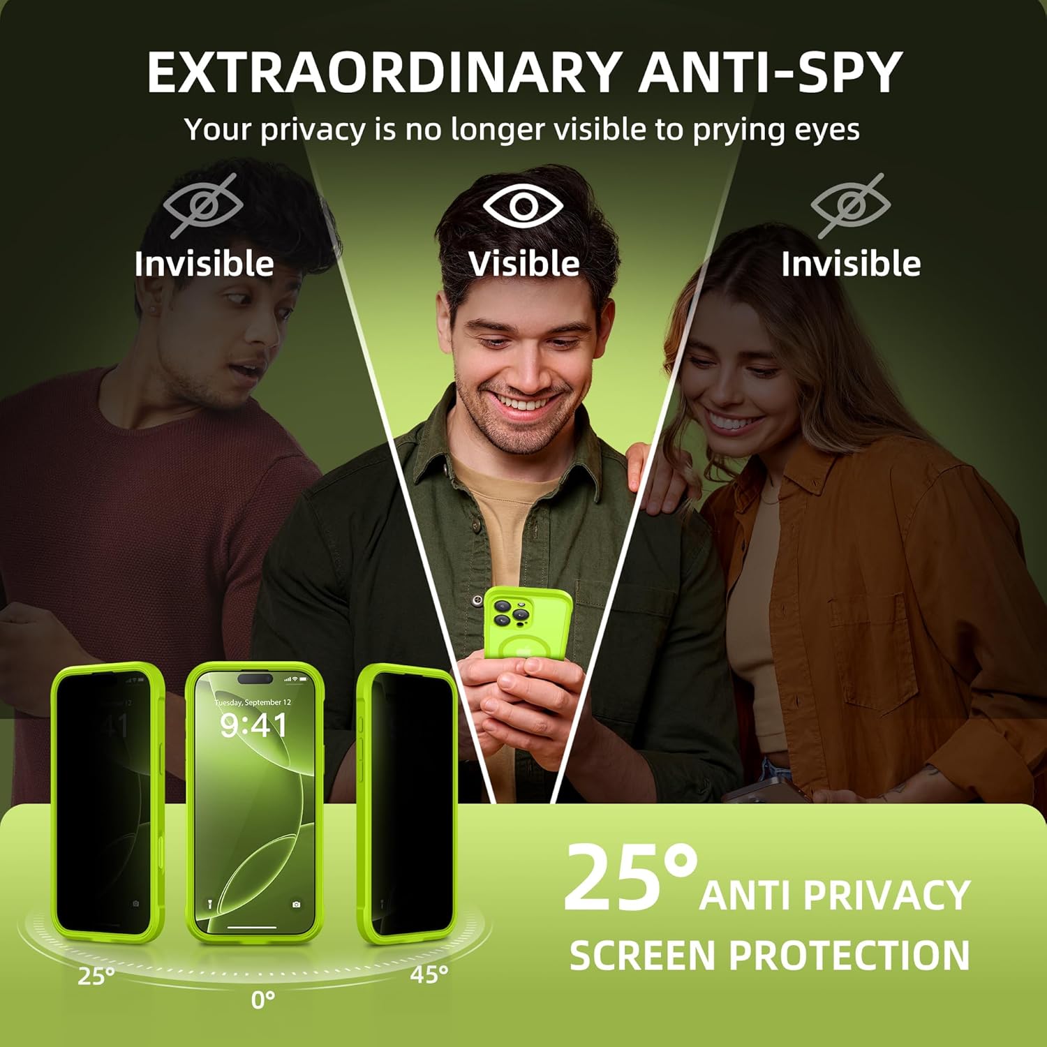 BERFY Magnetic for iPhone 16 Pro Case, Compatible with MagSafe, Built-in Privacy Screen Protector and Upgraded Camera Protection, Anti-Spy Full Body Shockproof Phone Case for 16 Pro 6.3", Bright Green