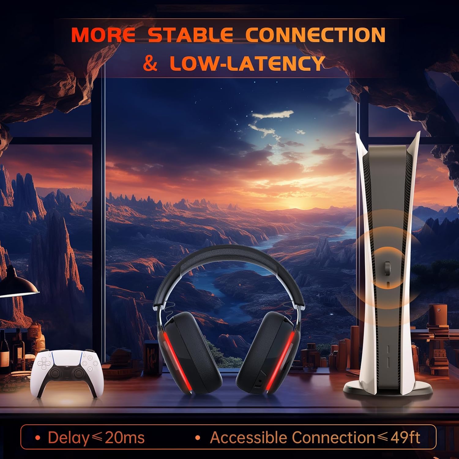 2.4GHz Wireless Gaming Headset for PS5, PS4 Fortnite & Call of Duty/FPS Gamers, PC, Nintendo Switch, Bluetooth 5.3 Gaming Headphones with Mic, Stereo Sound, Red Light -BlackRed