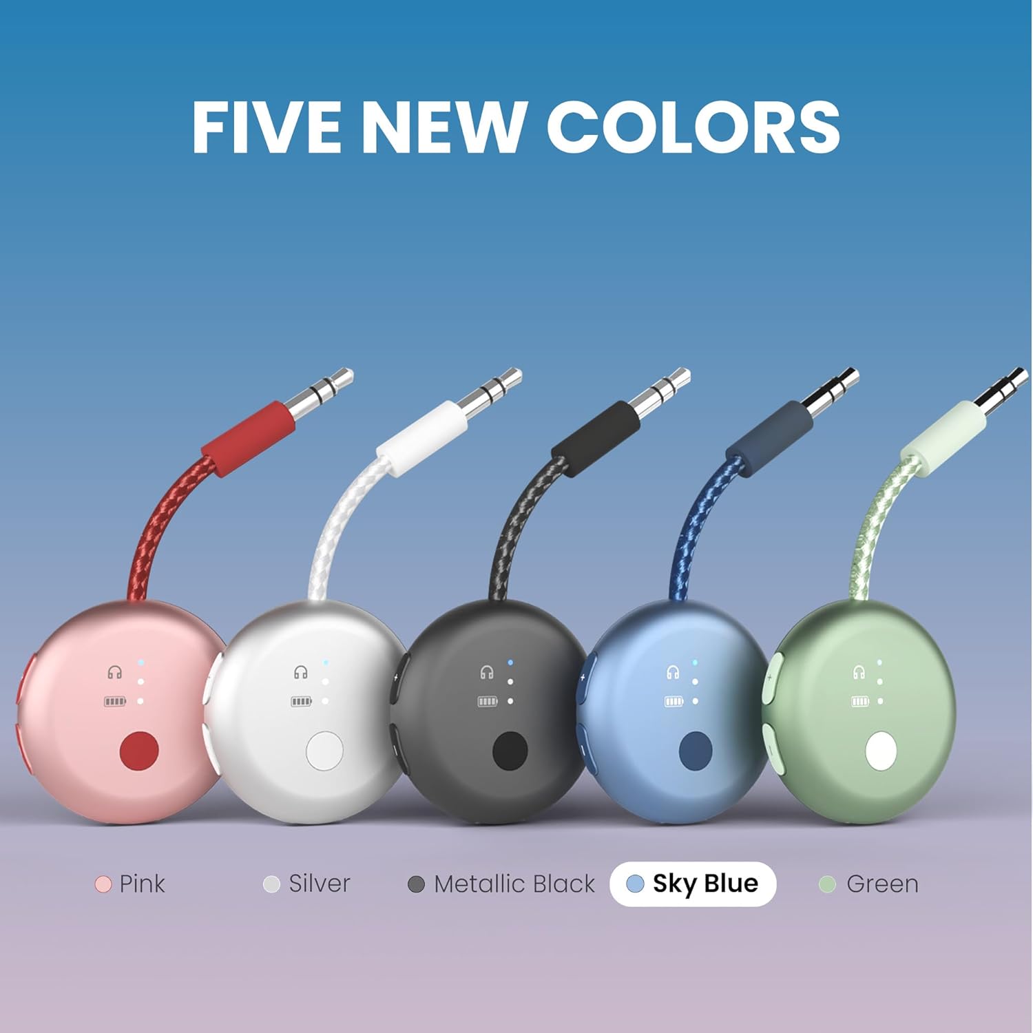 Avantree SoundJet R1 – Airplane Bluetooth Adapter for Headphones & AirPods, aptX Adaptive, Qualcomm Chipset, 20H Battery, Wireless Audio Transmitter for in-Flight Travel Essentials - Sky Blue