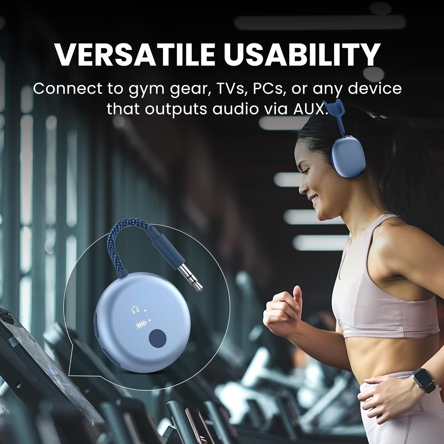 - 【PORTABLE BLUETOOTH TRANSMITTER】 Compact and easy to carry, this adapter also works as a portable Bluetooth transmitter for various uses like gym workouts, watching TV, and traveling.