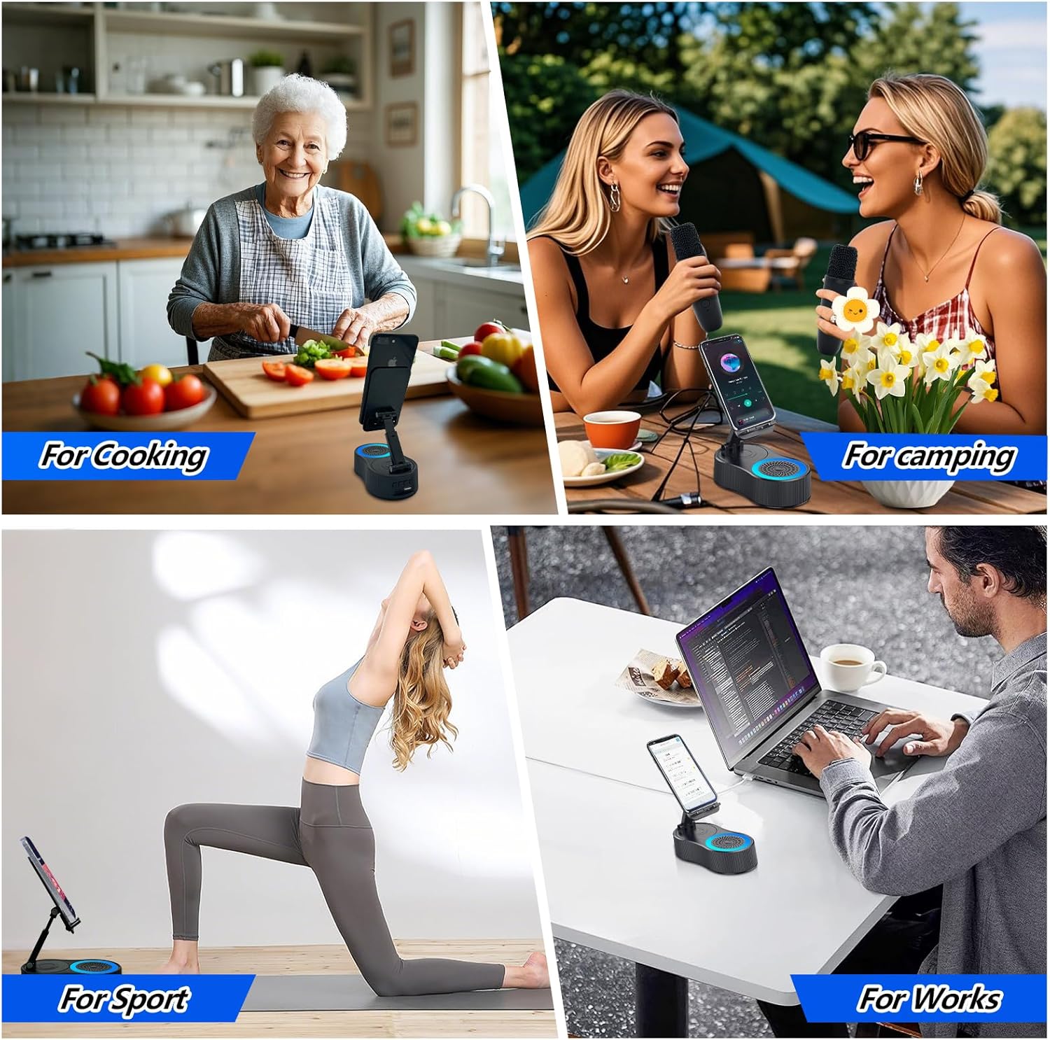 - 【Gifts for Men Women】Portable speaker, is perfect for bedroom, office, camping, hiking, yoga, cooking and more, this cell phone stand has universal compatibility and can stably support most 4-13” smartphones, tablets and e-readers. Induction speaker is a perfect gift for Birthday, Mother's Day, Father's Day, Valentines Day, Christmas...