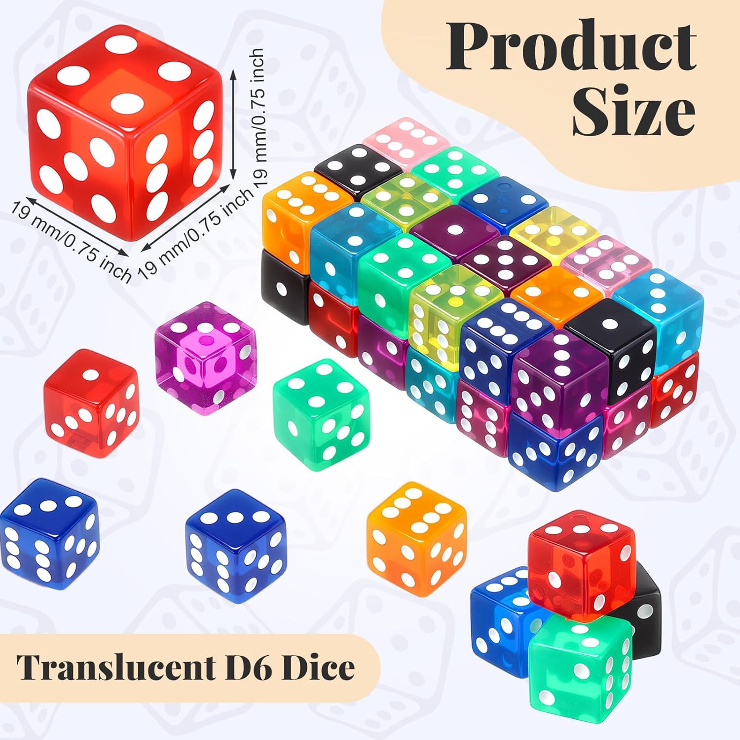 - Comprehensive Gaming Set: elevate your gaming experience with our inclusive package of 36 translucent 19mm polyhedral D6 dice in 6 vibrant colors; With this set, every player is equipped and ready for that crucial role, ensuring seamless gameplay for all