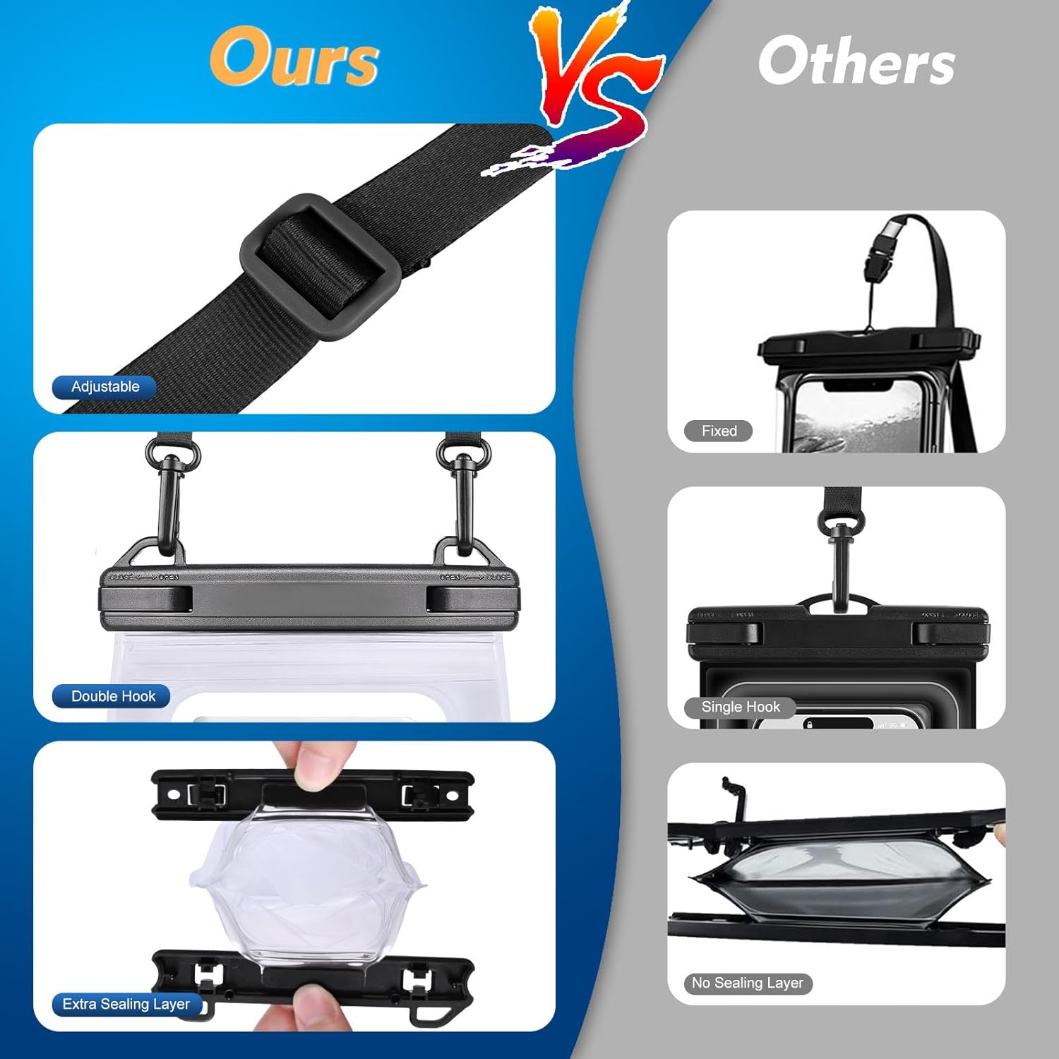 - [Essential for Travel & Water Sports] Your ultimate companion for pools, beaches, snorkeling, surfing, sailing, skiing, boating, tubing, showers, saunas, and water theme parks. A must-have cruise/travel accessory to safeguard devices while embracing the wild!