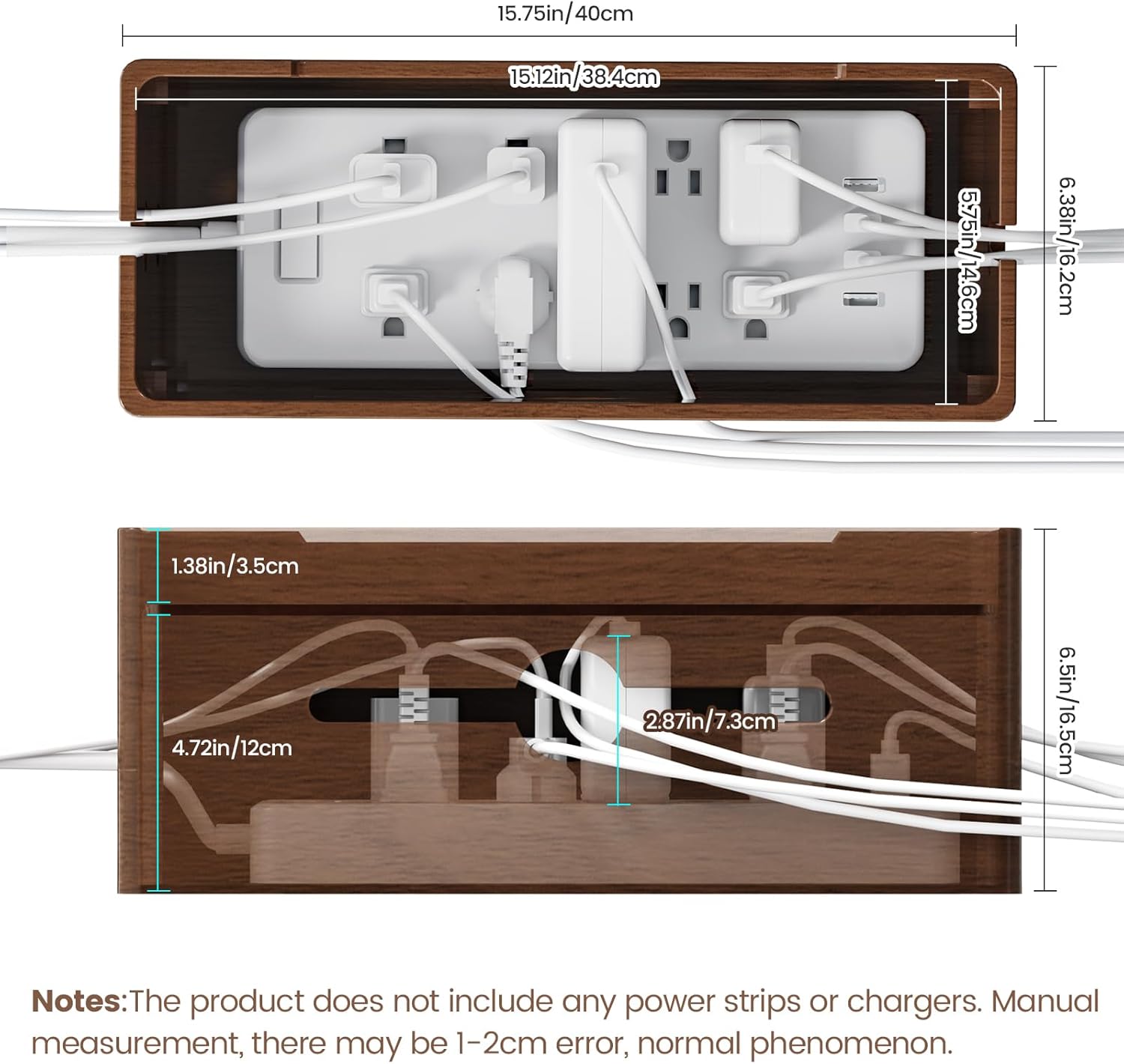 - ✅ WARMLY REMINDER: Our wooden cable box does not come with power strips or chargers. The transparent partition shown in the first main image is simply to help you visualize the layering of upper and lower and position of the partition. The actual product only includes 1 wooden box, 1 black partition and some accessories, not including any transparent partition.