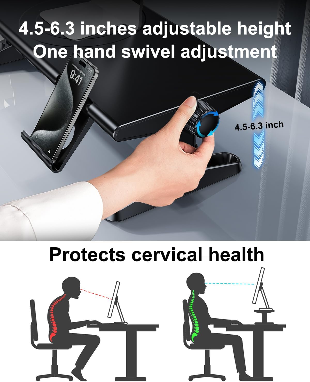 - 【4.5-6.3 Inches Freely Adjustable & Knob Lift】 Unlike other monitor stands that can only be adjusted at a fixed height, our monitor stand allows you to adjust between 4.5-6.3 inches freely. Our knob lift design allows you to adjust it with one hand, and you don't need to move the monitor, which is more trouble-free and more convenient than other monitor risers.