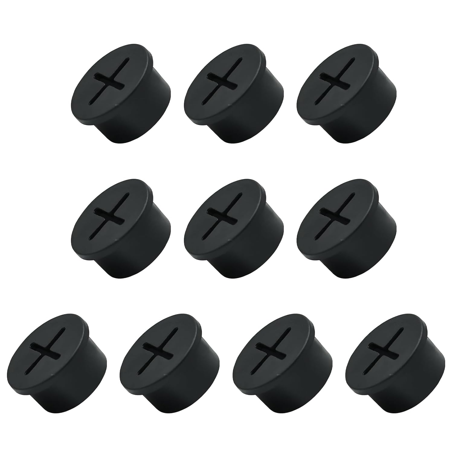 - Package & Size: Each package includes 10 durable rubber wire grommets designed for 3/4 inch (20 mm) desk cord holes. These grommets feature a 9/16 inch (15 mm) through-hole opening, a 15/16 inch (24 mm) overall diameter, and a 1/2 inch (12 mm) height with a reinforced 5/64 inch (2 mm) thick