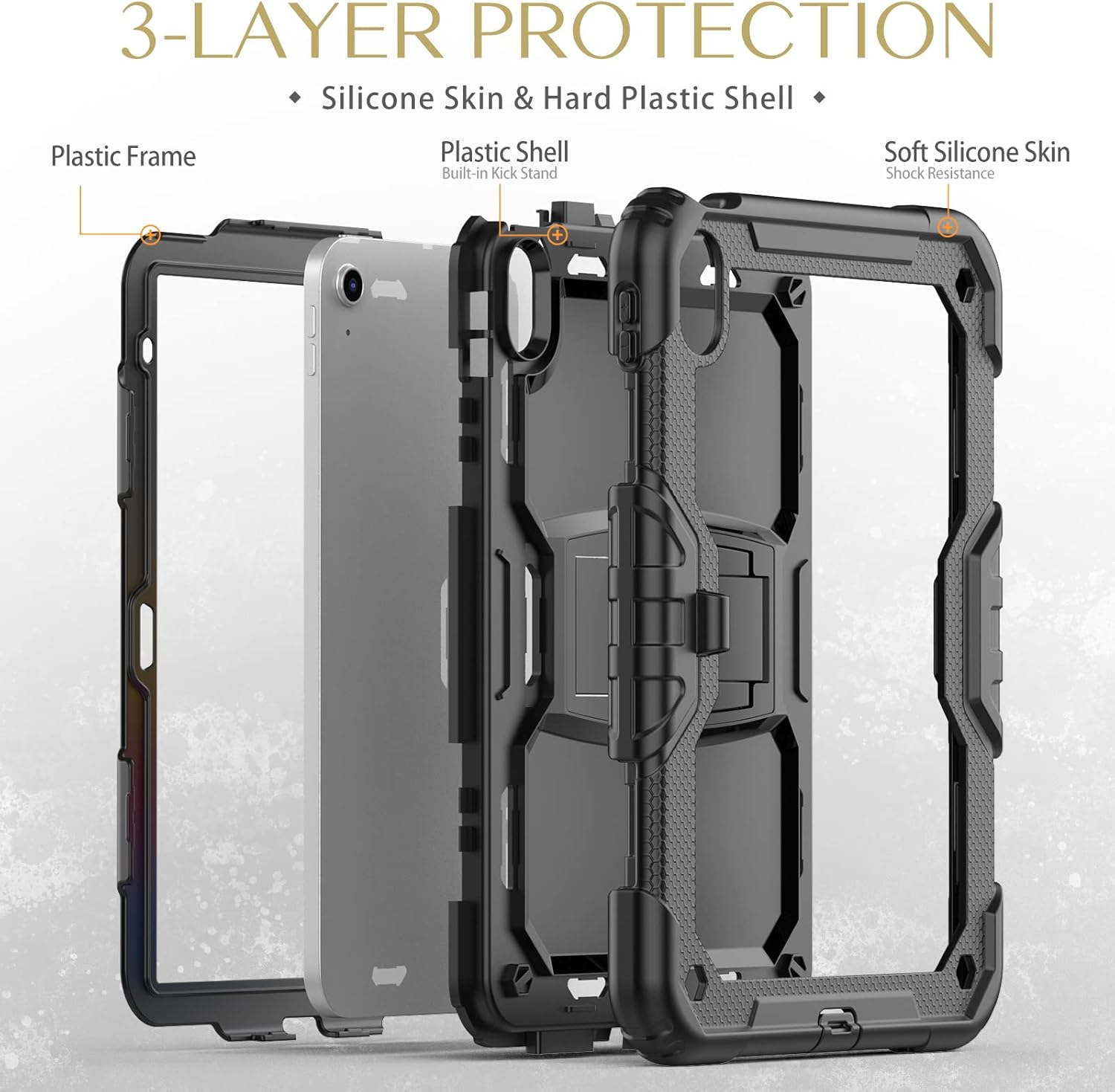 - Safety Protection:3-layer shockproof heavy duty rugged protective iPad 10th 11th Generation case for kids fridendly,made from flexible silicone and durable hard PC impact-resistant materials to effectively prevent accidental drops, bumps and falls.
