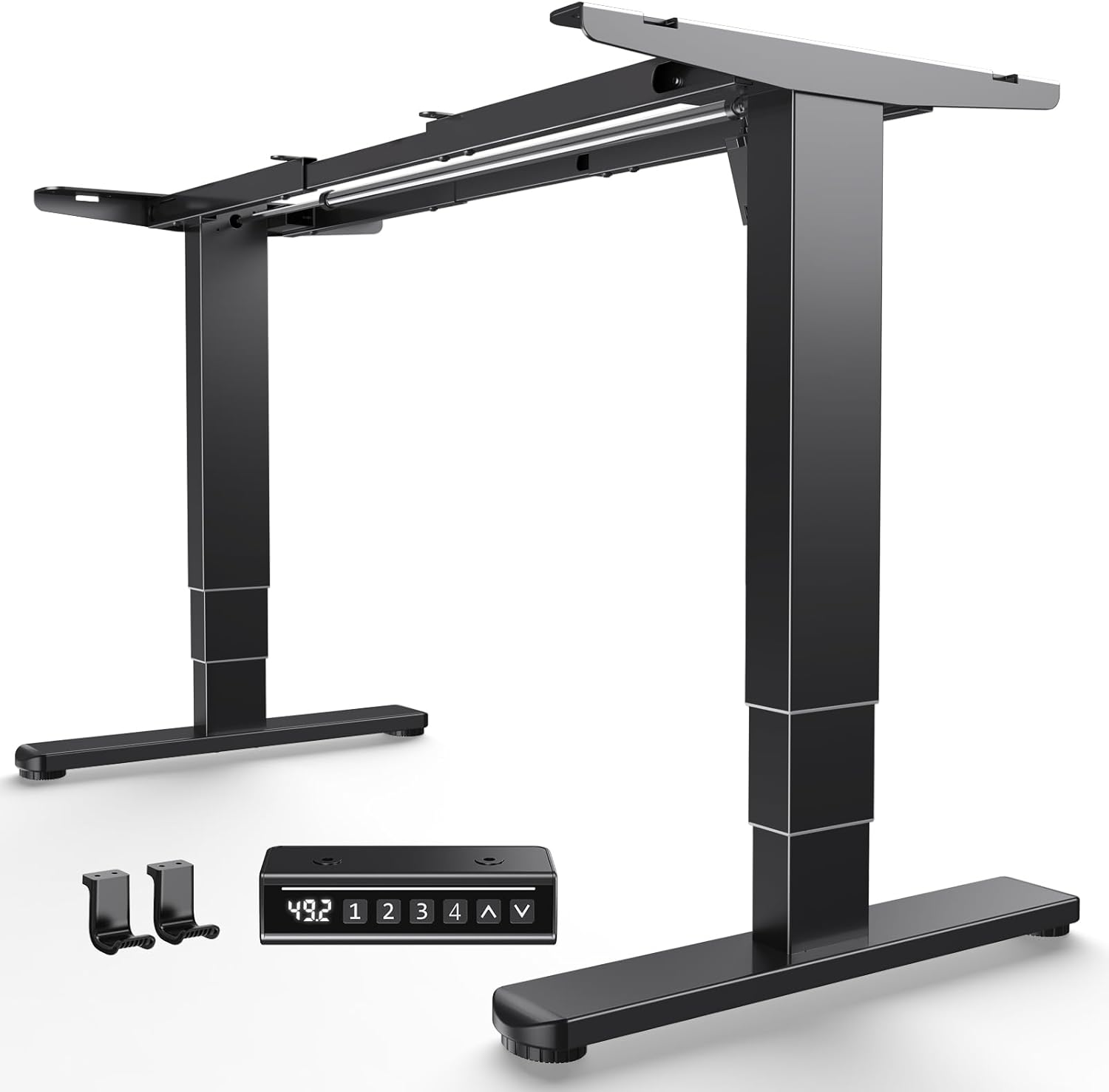 HUANUO Electric Standing Desk Frame with 3-Stage Adjustable Desk Legs, Brushless Motor, and 220 lbs Max Load, Home Office Height-Adjustable Desk Frame for Max 43.31″ x 86.61″ Desktop, Frame Only