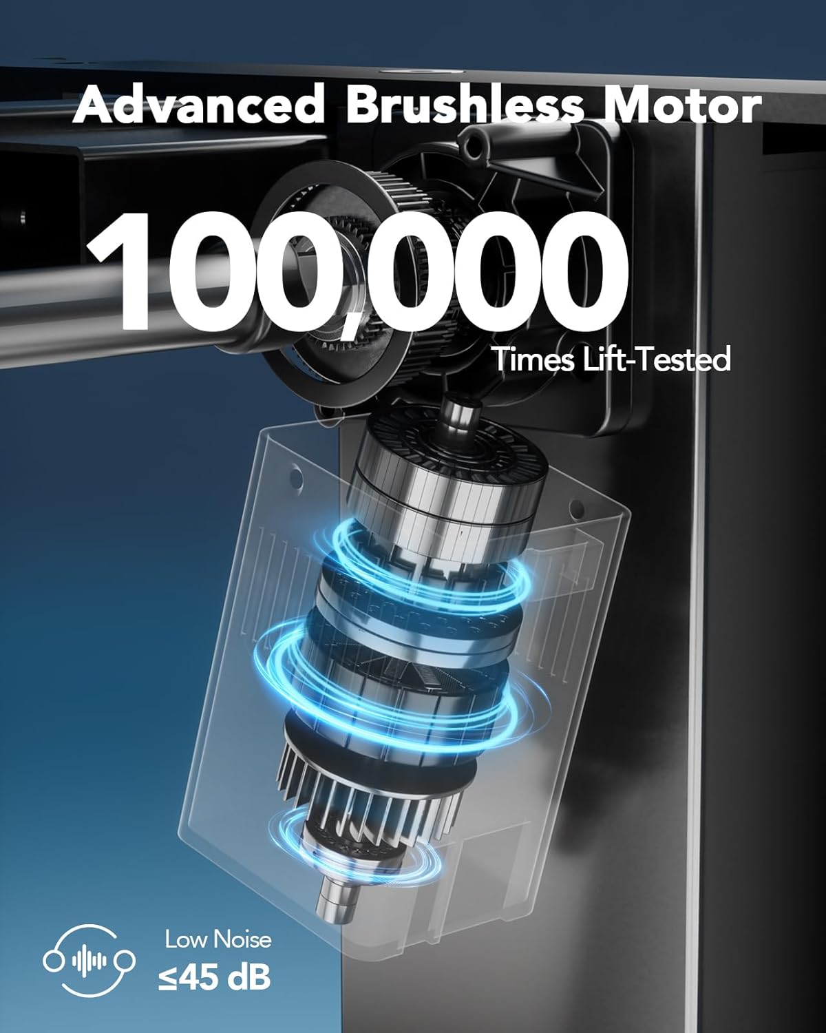 - Powerful Brushless Motor: Equipped with an advanced brushless motor, this desk frame has passed a 100,000-cycle lift test fully loaded, ensuring reliable long-term performance. The ultra-quiet operation (≤45 dB) enables you to focus without distraction.