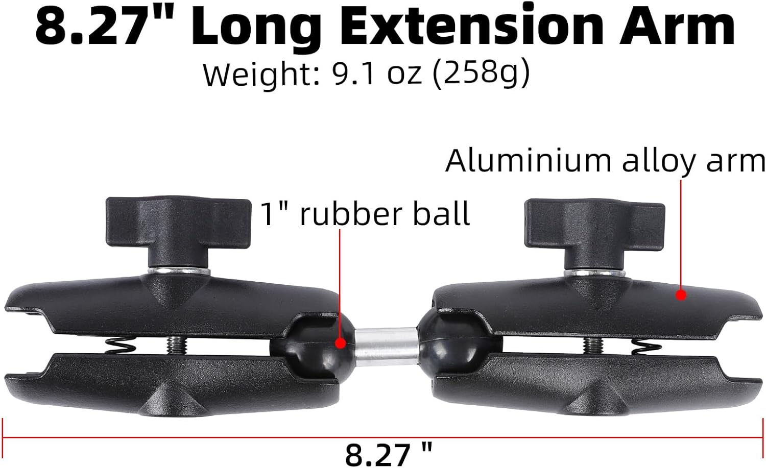 Dual Extension Double Socket Arm with 1" Double Ball Adapter Compatible with RAM B Size Mount and Other 1 inch Industry Standard Device, 360° Rotation Rod for Bike, Truck, Car (8.27" Length)