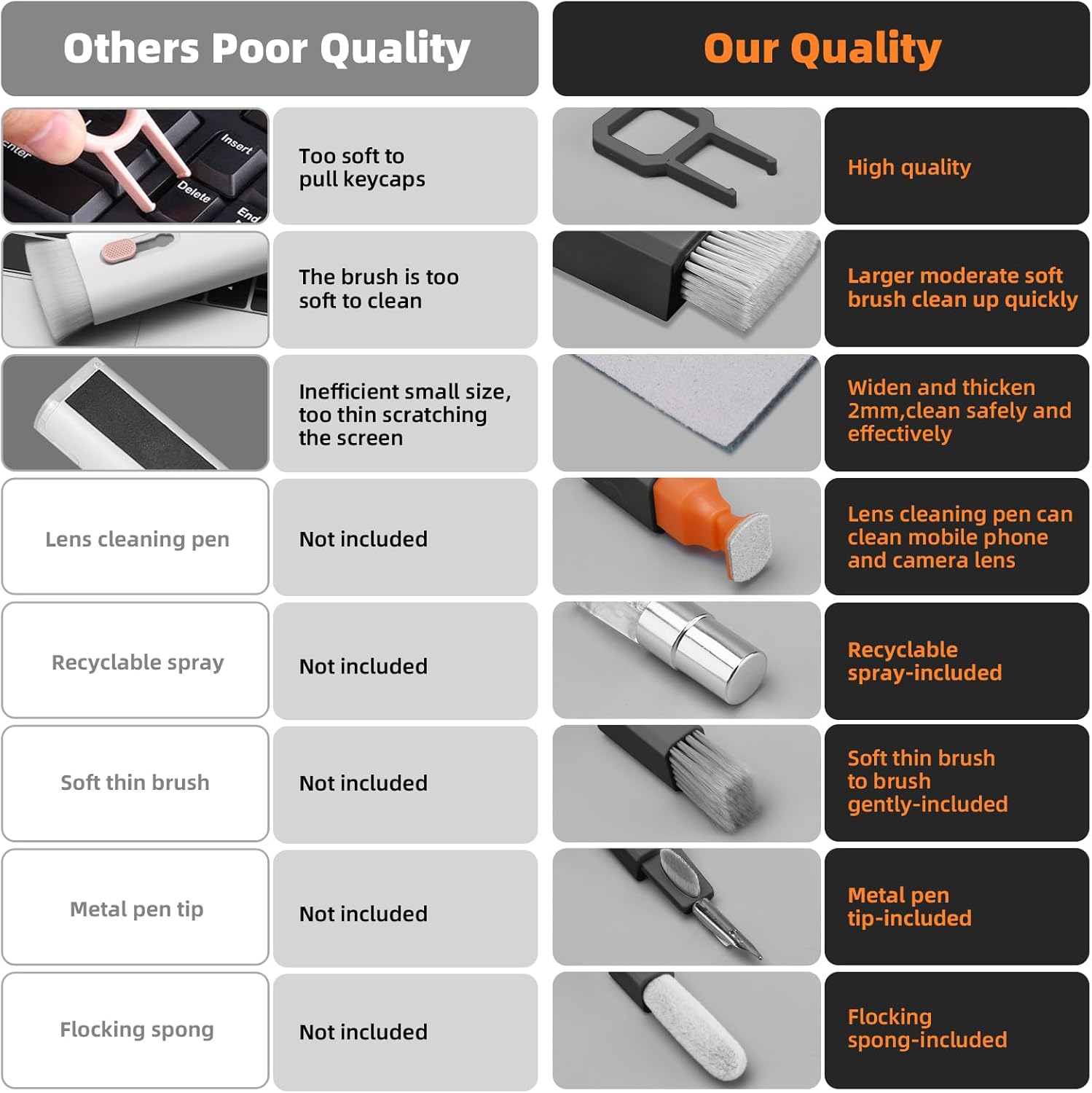 - MULTIFUNCTIONAL KEYBOARD CLEANING KIT: This computer cleaning kit has been professionally tested time to provide professional maintenance for mechanical, gaming, and membrane keyboards. The specially designed keycap puller safely removes the keyboard without damaging the switches. Two keyboard brushes work in tandem - the large, adjustable soft brush cleans the keyboard surface in seconds, while the precision brush accesses tight key gaps, completing the removal of debris in hidden crevices