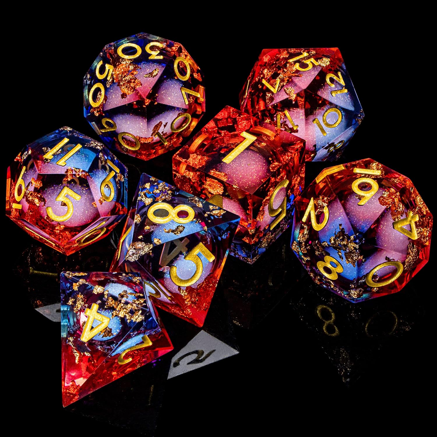 - 【Exceptional Handmade】:Each sharp dice is hand sanded and polished. The numbers on the dice are clear and easy to read, with perfect details and well-made. We use high-quality resin to make dice, odorless, non-toxic, strong, safe. The polyhedral dice have no bubbles and are excellent balanced for a great gaming experience.