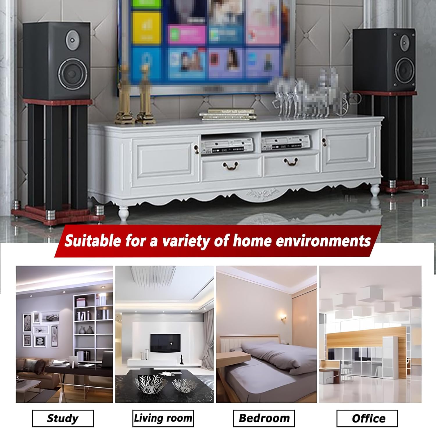 - METAL FEET AND GASKETS-- The bookshelf speaker stands is equipped with metal feet and gaskets. The metal feet will run through the entire base, which is sturdy and durable; there are metal gaskets at the bottom, which can protect your precious floors or carpets from scratches