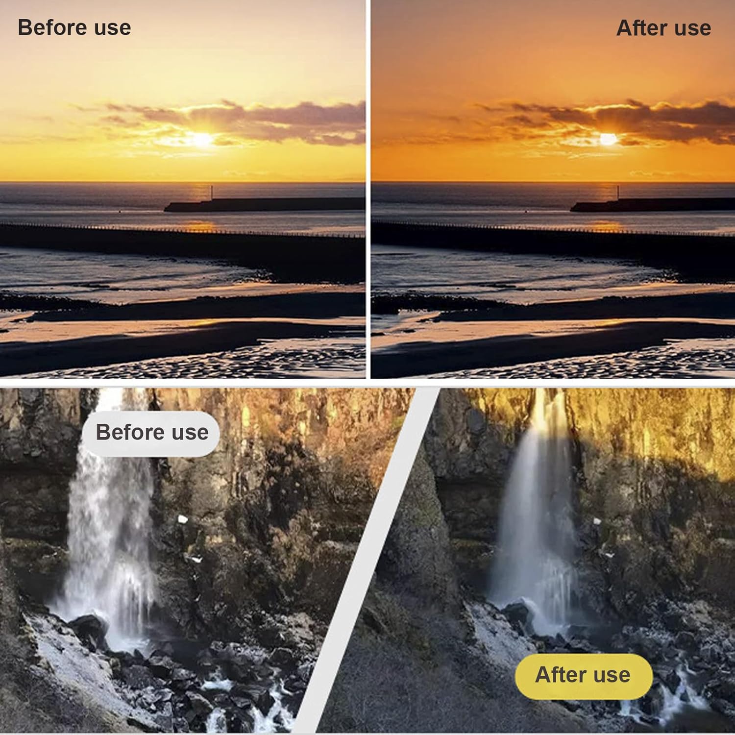 - Variable ND2-ND400 Filter,Helps reduce the amount of light entering the lens without affecting color accuracy. Extends shutter exposure time to lower overall image brightness, creating unique effects when capturing rivers, waterfalls, sunrises/sunsets, light trails, ocean currents, and other dynamically moving subjects.