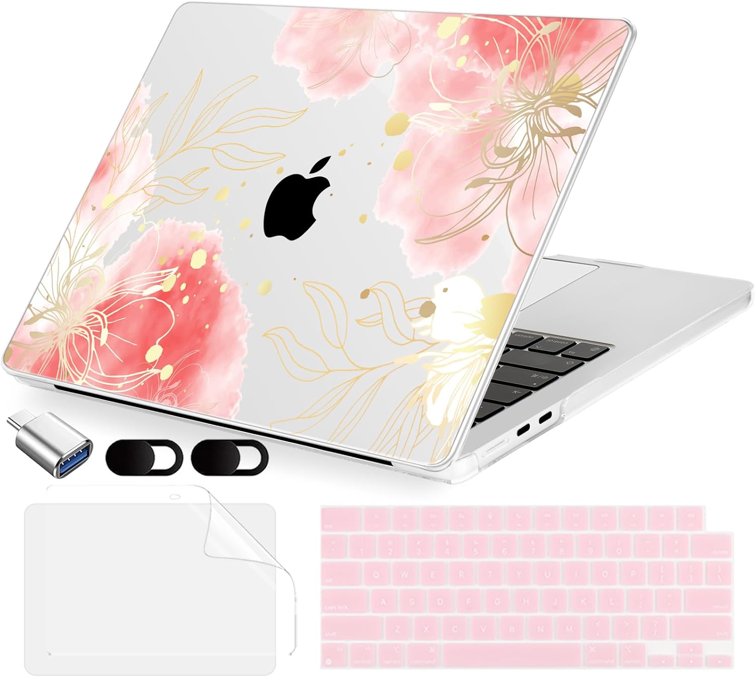Compatible with MacBook Air 15 inch Case, M4 A3241/M3 A3114/M2 A2941 (Released 2025 to 2023), Hard Shell, Keyboard Cover, Screen Protector, Webcam Cover & Type-C Adapter, Vector Flower3