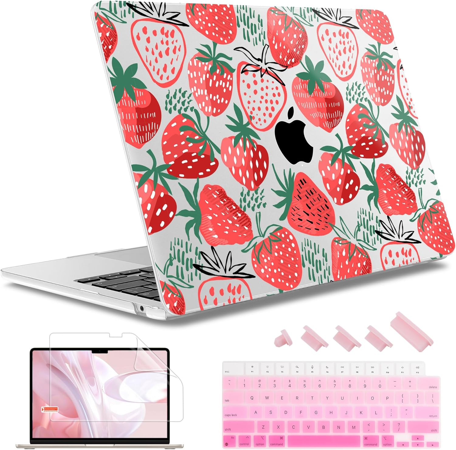 May Chen for MacBook Air 13.6 Inch Case 2025/2024/2023/2022 Release (Model A2681 A3113 A3240, M2 M3 M4 Chip) – Hard Shell Laptop Cover with Keyboard Cover & Screen Protector,Strawberries