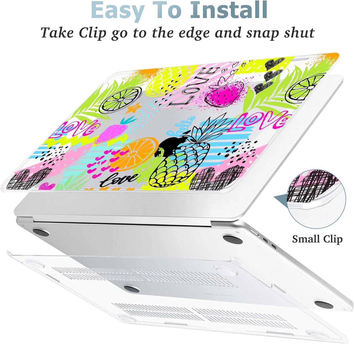 - Snap on design, Easy to install and disassemble and easy on and off, Fully vented for heat disbursement, Fully access to all ports and features, plug your charger, cable or headset without removing the case. Package Including keyboard cover, Dust plug and screen protector to protect your keyboard & screen against spills.