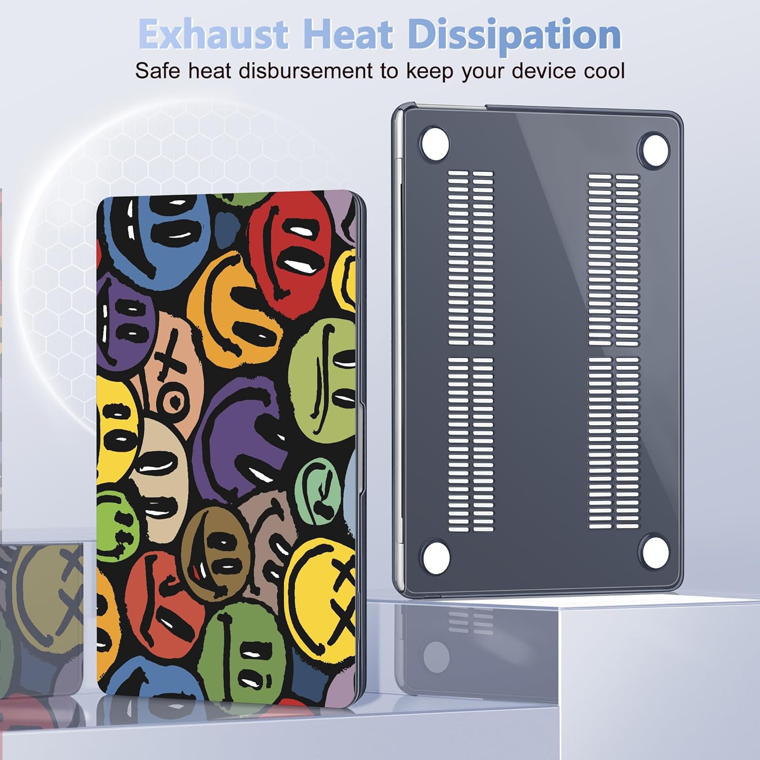 - Perfect Fit: Precise cutouts allow to access all functions and controls easily. Plug your charger, cable or headset without removing the case. The bottom cover is designed with ventilation vents to help dissipate heat and prevent your laptop from overheating. Four silicone feet on the bottom cover keep your laptop secure and stable