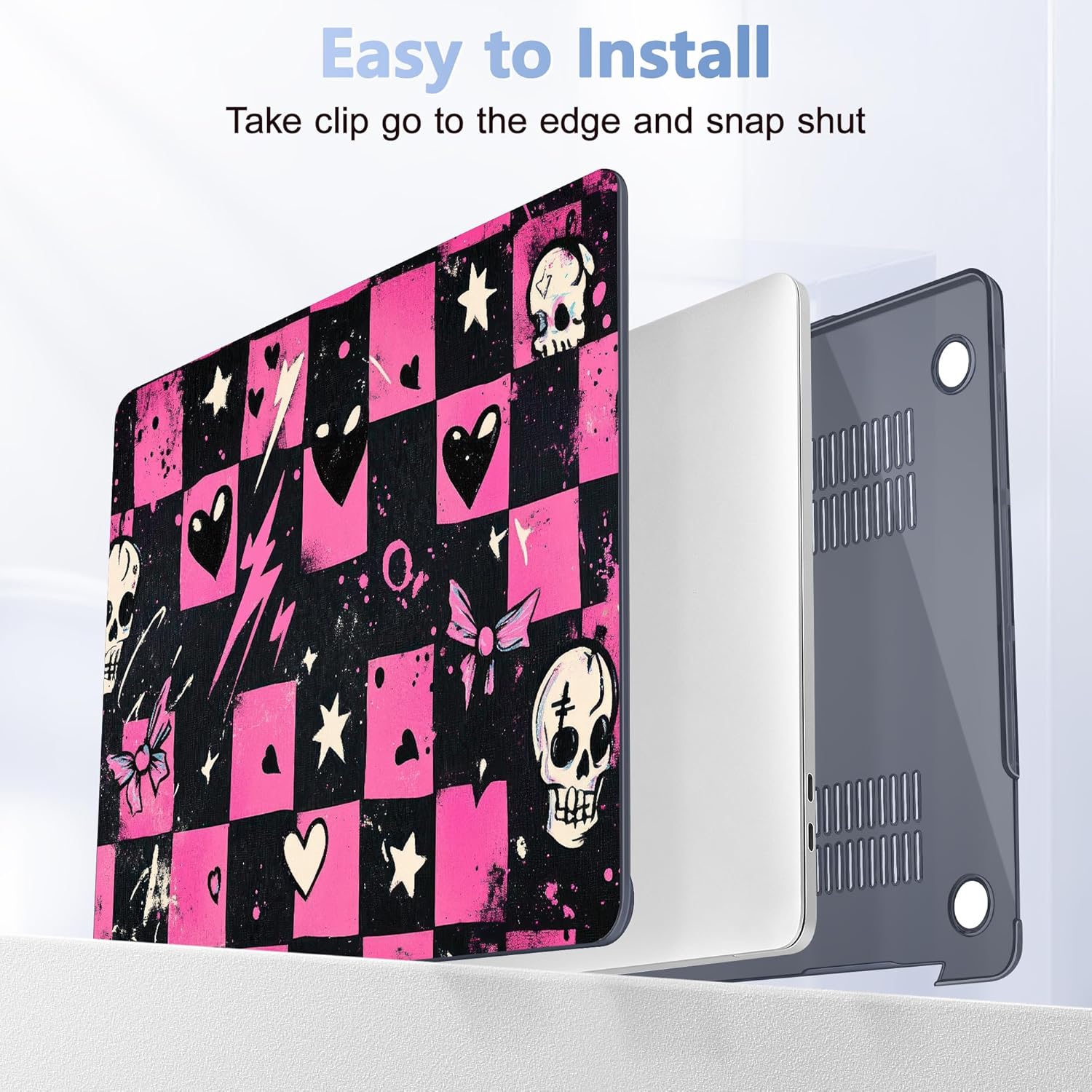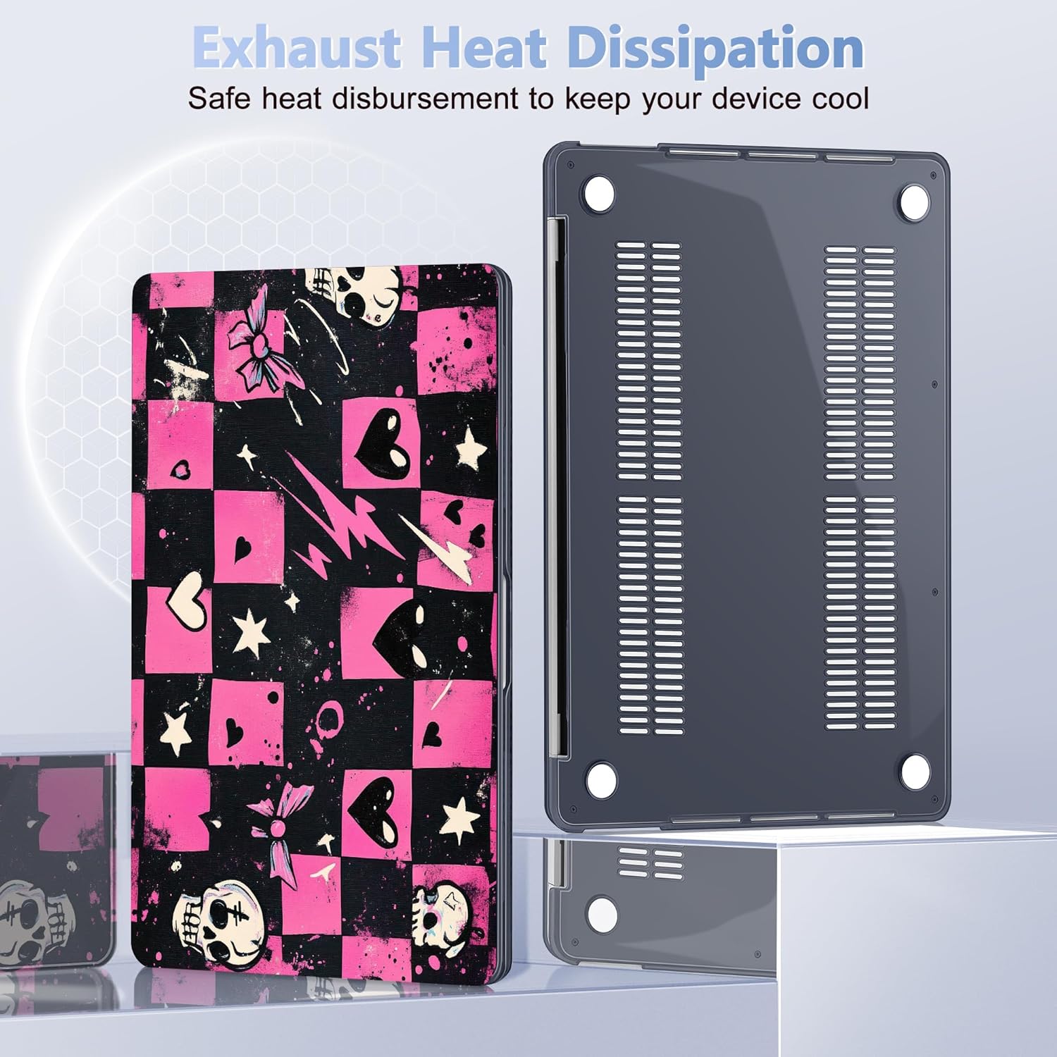 - Perfect Fit: Precise cutouts allow to access all functions and controls easily. Plug your charger, cable or headset without removing the case. The bottom cover is designed with ventilation vents to help dissipate heat and prevent your laptop from overheating. Four silicone feet on the bottom cover keep your laptop secure and stable