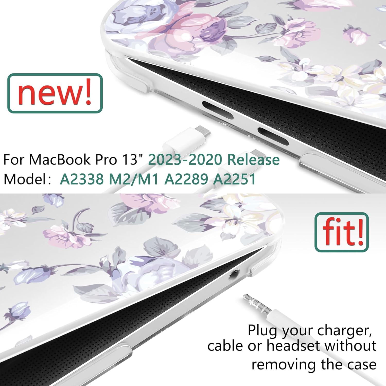 TWOLSKOO Compatible with MacBook Pro 13 inch Case 2023-2016 A2338 M2/M1 A2251 A2289 A2159 A1989 A1706, Plastic Hard Shell Cover & Keyboard Skin & Screen Protector, Purple Peony