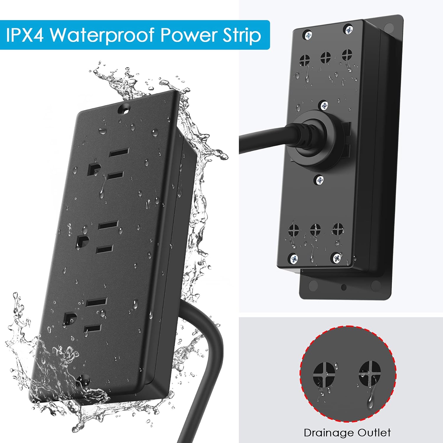 - IPX4 Waterproof Power Strip :IPX4 waterproof and electric Shockproof,suitable for high humidity,can be use indoors or outdoor,prevent short circuit or electrics shock and other safety issues caused by water splash or shower.