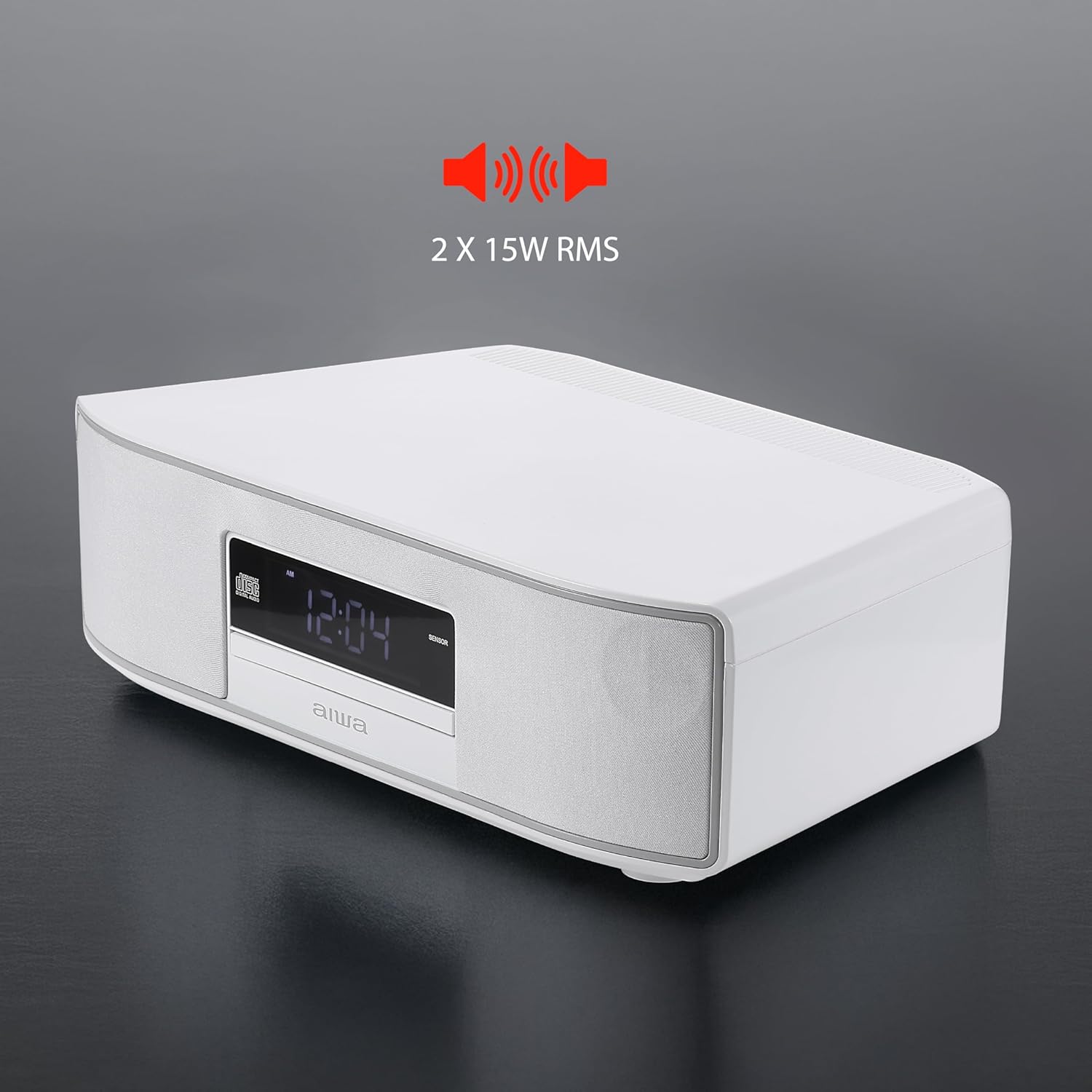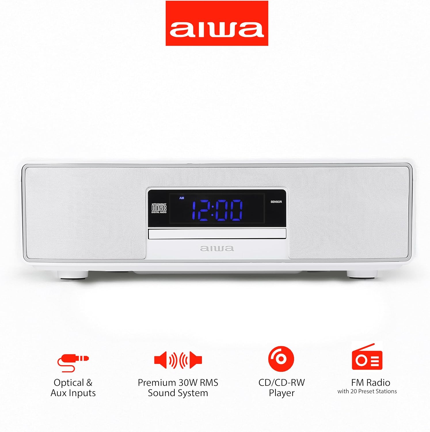 AIWA - Exos Home Speaker, Premium 30W RMS Sound System with CD Player, Bluetooth Connectivity, FM Radio, Optical Digital Input, Dual 1” Tweeters + Dual 2” Bass Units, IR Remote Control