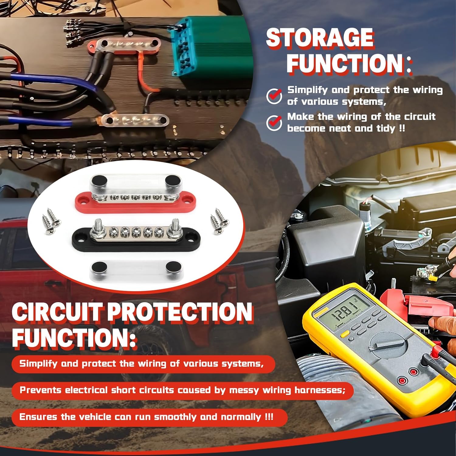 - 【Widely Used and Function】Designed to streamline and secure wiring in automotive, marine, and solar power systems, making the wiring of circuit become neat and tidy.This block widely work in many environment such as marine, car, trailer, RV, motorcycle, solar wiring and etc..