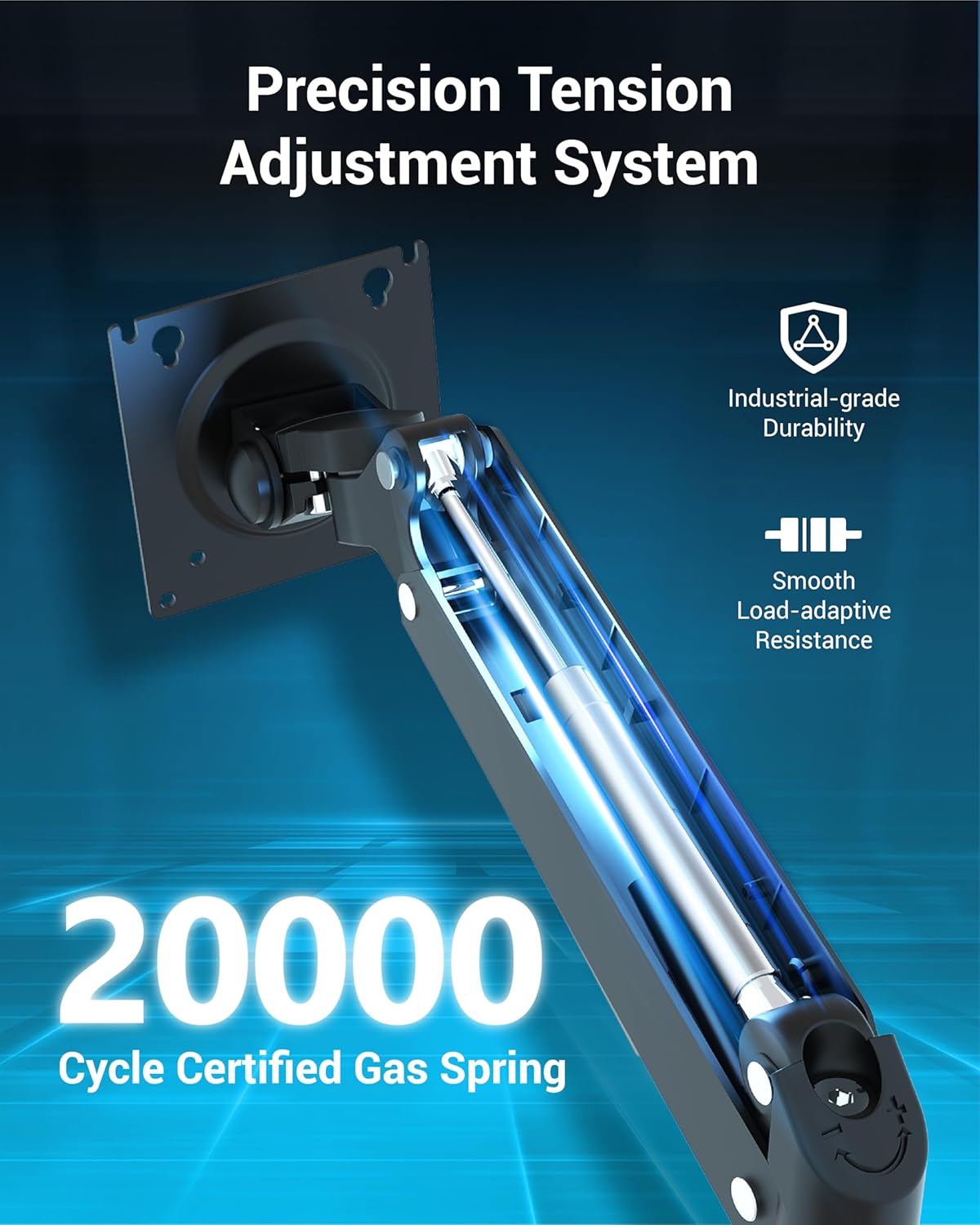 - 【Space-Saving & Organized】 Featuring integrated cable channels, this sleek design keeps cords hidden and adjustments effortless. Enjoy a consistently tidy workspace with a monitor arm desk mount - perfect for professionals and gamers who value a clean, clutter-free setup.