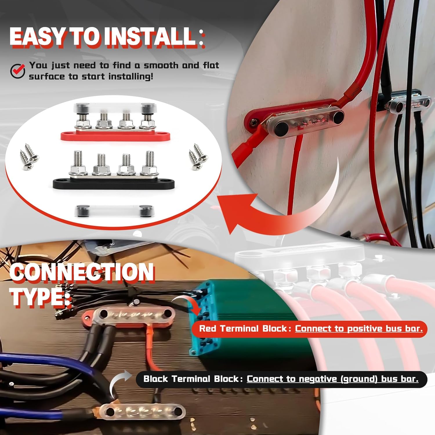 - 【Connection Type】Red positive bus bar and black negative(ground) bus bar as a pair.