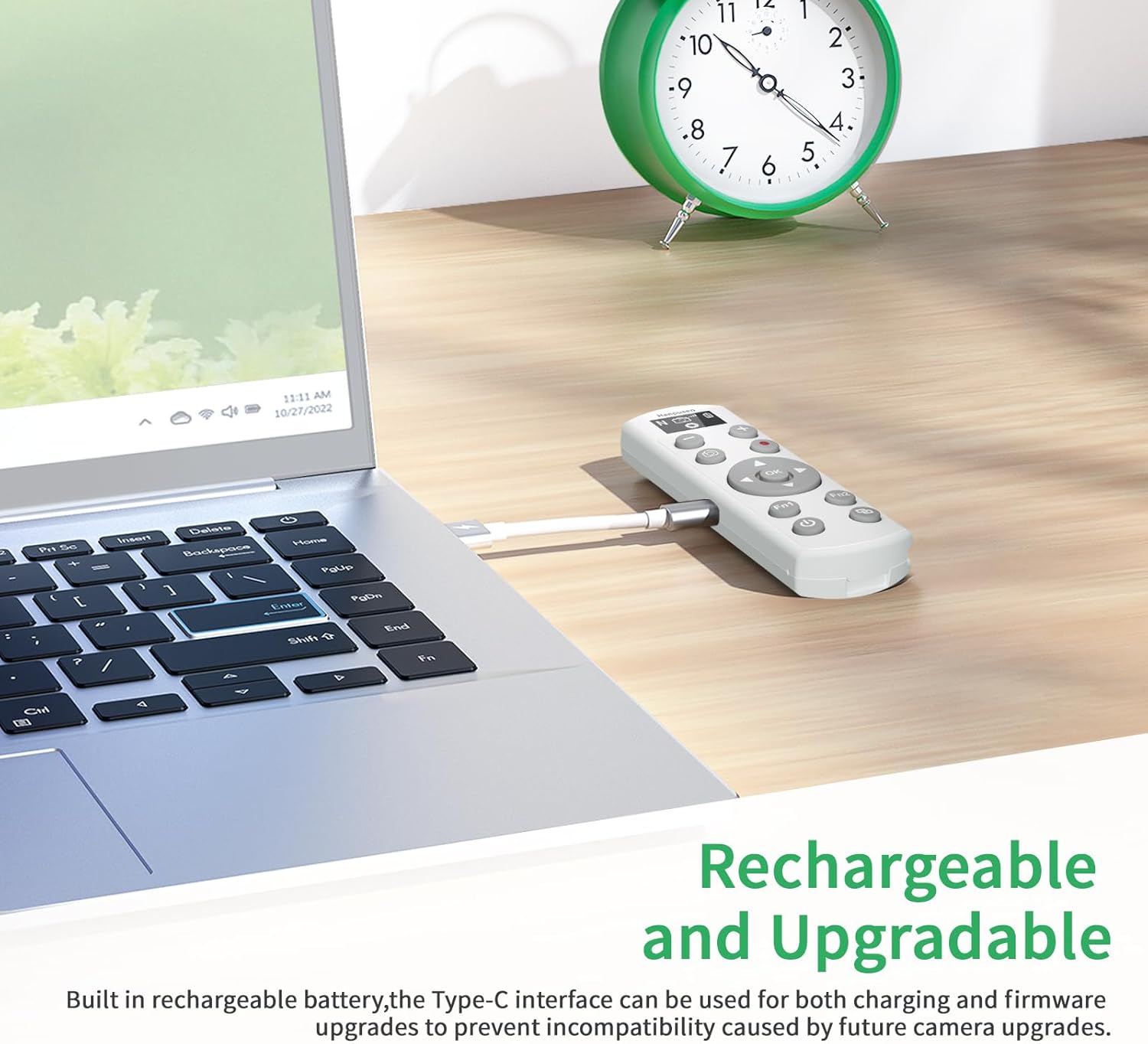 - Rechargeable Design and Firmware Upgrade: Built-in rechargeable battery with universal Type-C interface, providing up to 10 hours of continuous use on a full charge, eliminating the hassle of frequent battery replacement. The Type-C interface also supports firmware updates. If compatibility issues arise due to future camera upgrades, the remote control firmware can be upgraded via this interface.