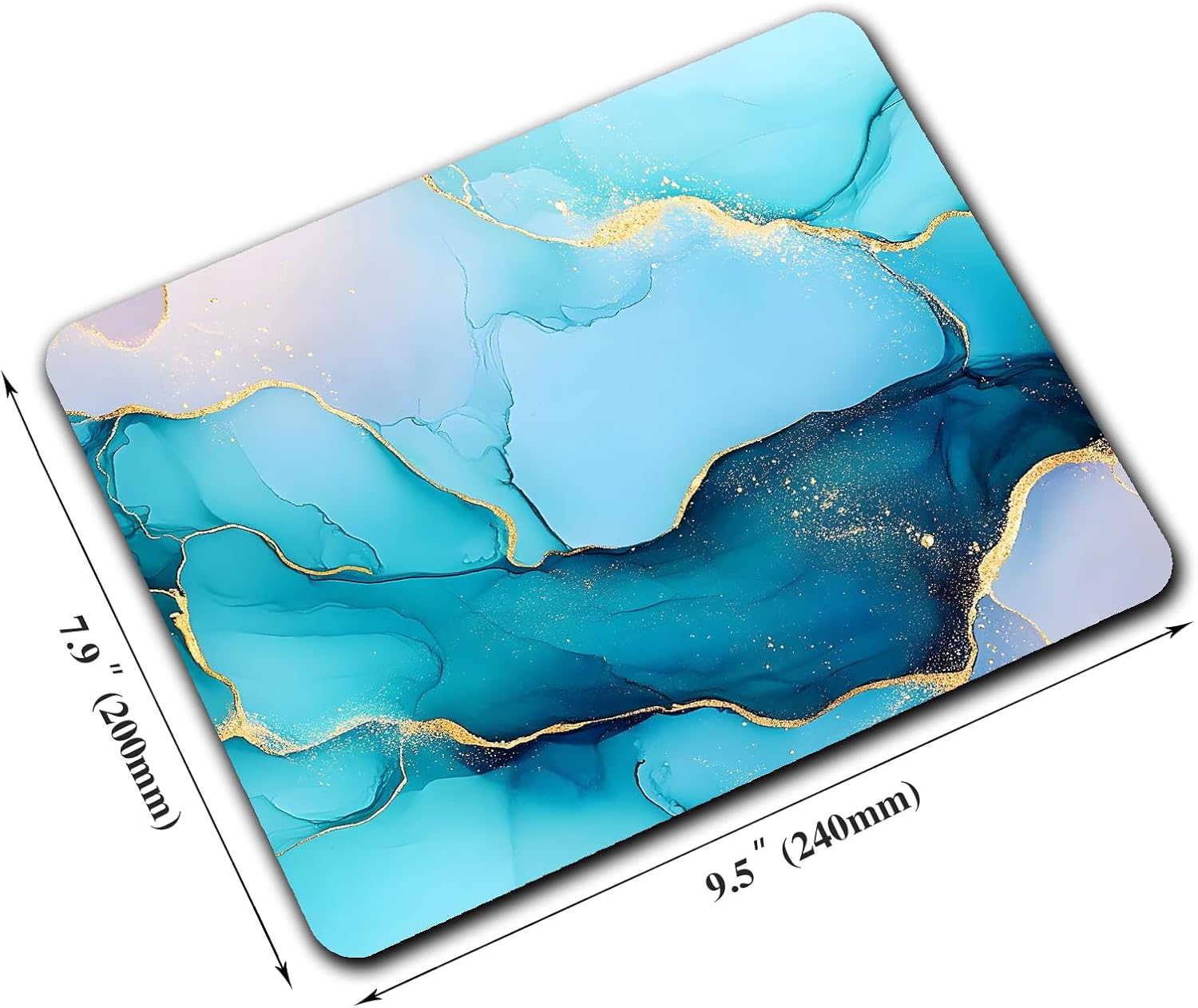 Golden Texture Teal Marble Mouse Pads for Desk, Portable Wireless Computer Mouse pad Small Design with Women, Non-Slip Rubber Base Laptop Mousepad 9.5" x 7.9" Smooth Surface for Office & Travel