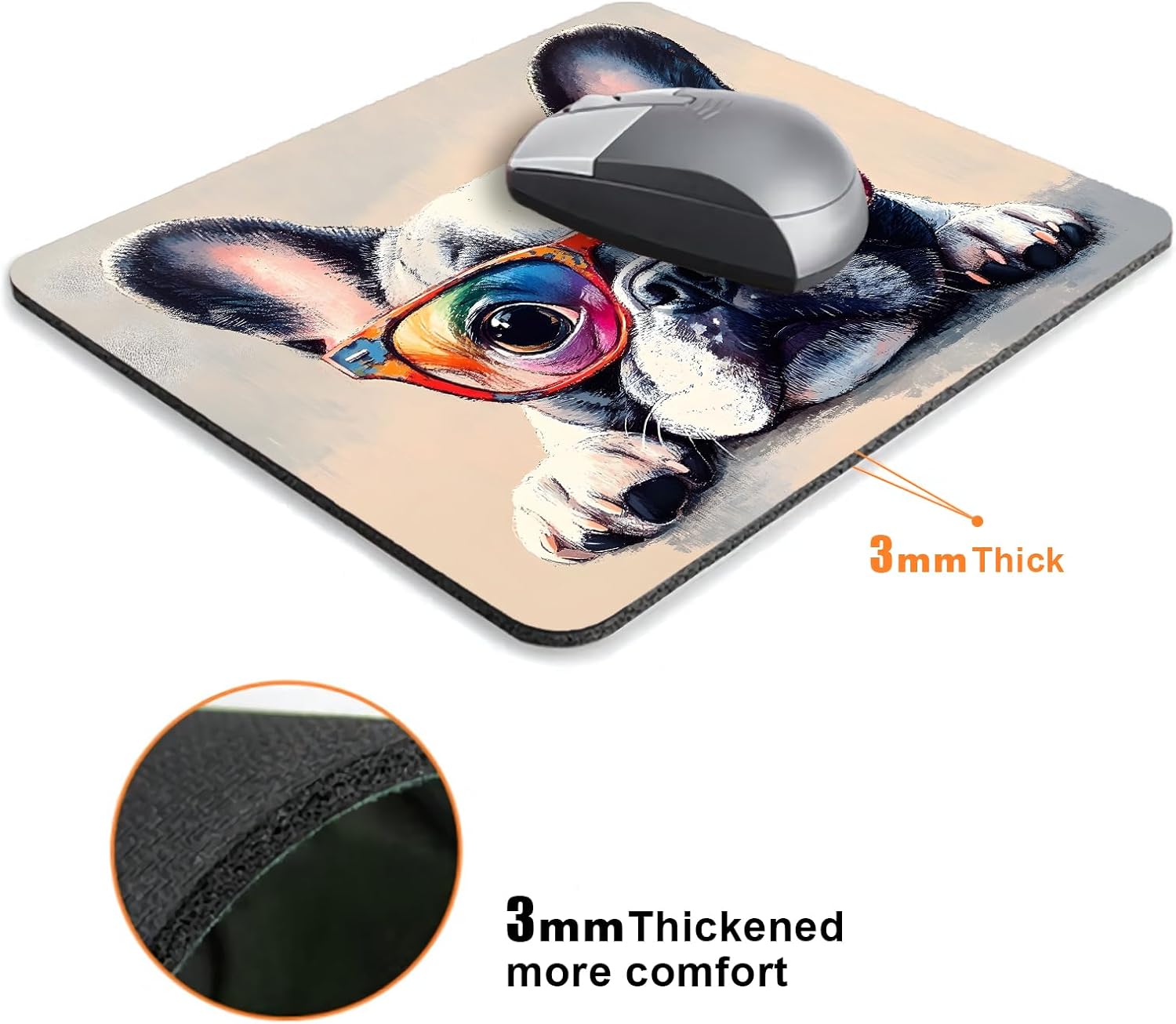 Funny Bulldog Dog Mouse Pads for Desk, Portable Wireless Computer Mouse pad Small Design with Women, Non-Slip Rubber Base Laptop Mousepad 9.5" x 7.9" Smooth Surface for Office & Travel