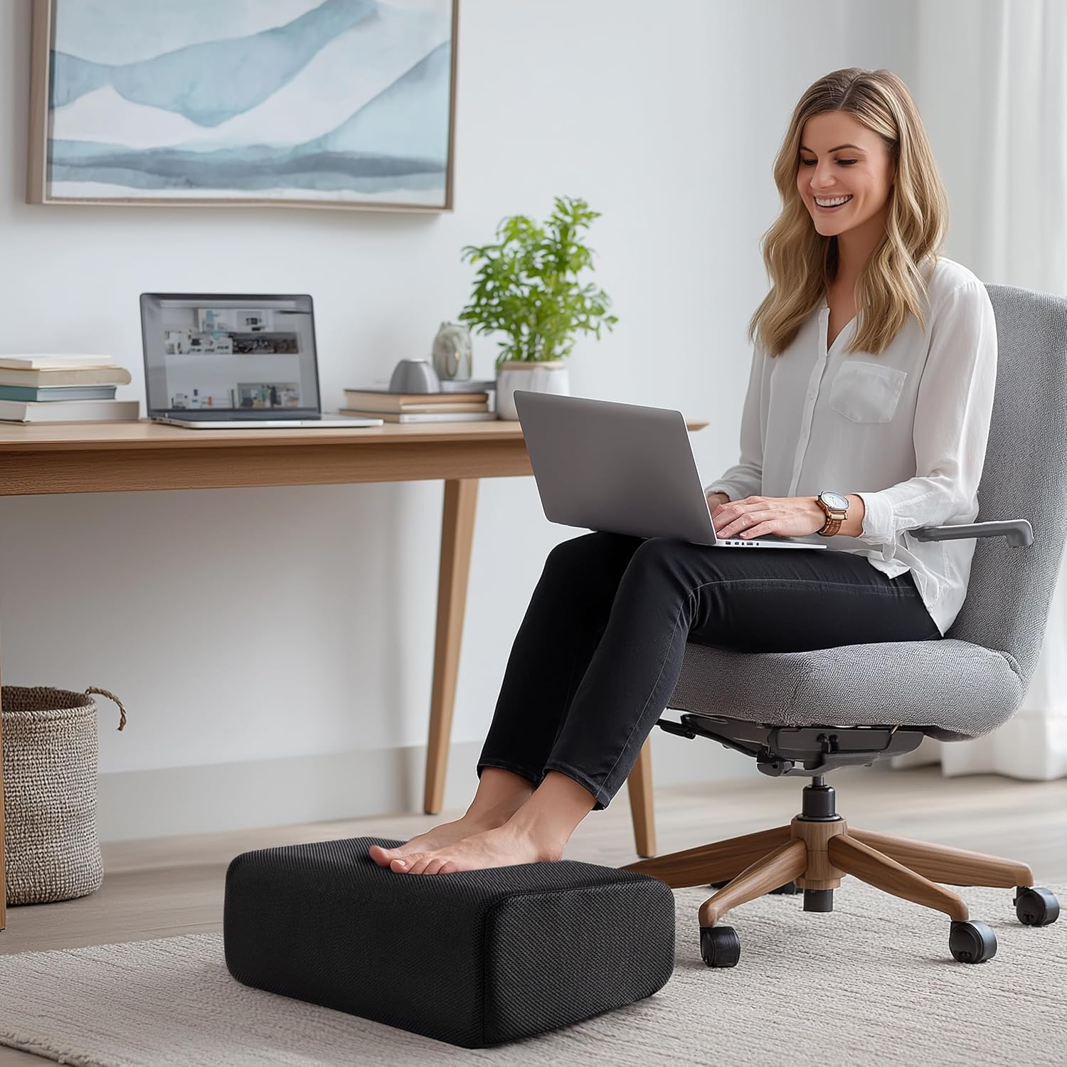 - Versatile - More than just a footrest—use it under your desk, on the sofa, in bed, or even on long flights. Functions as a footstool, leg support cushion, or lap pillow. Lightweight and travel-ready for comfort wherever life takes you.