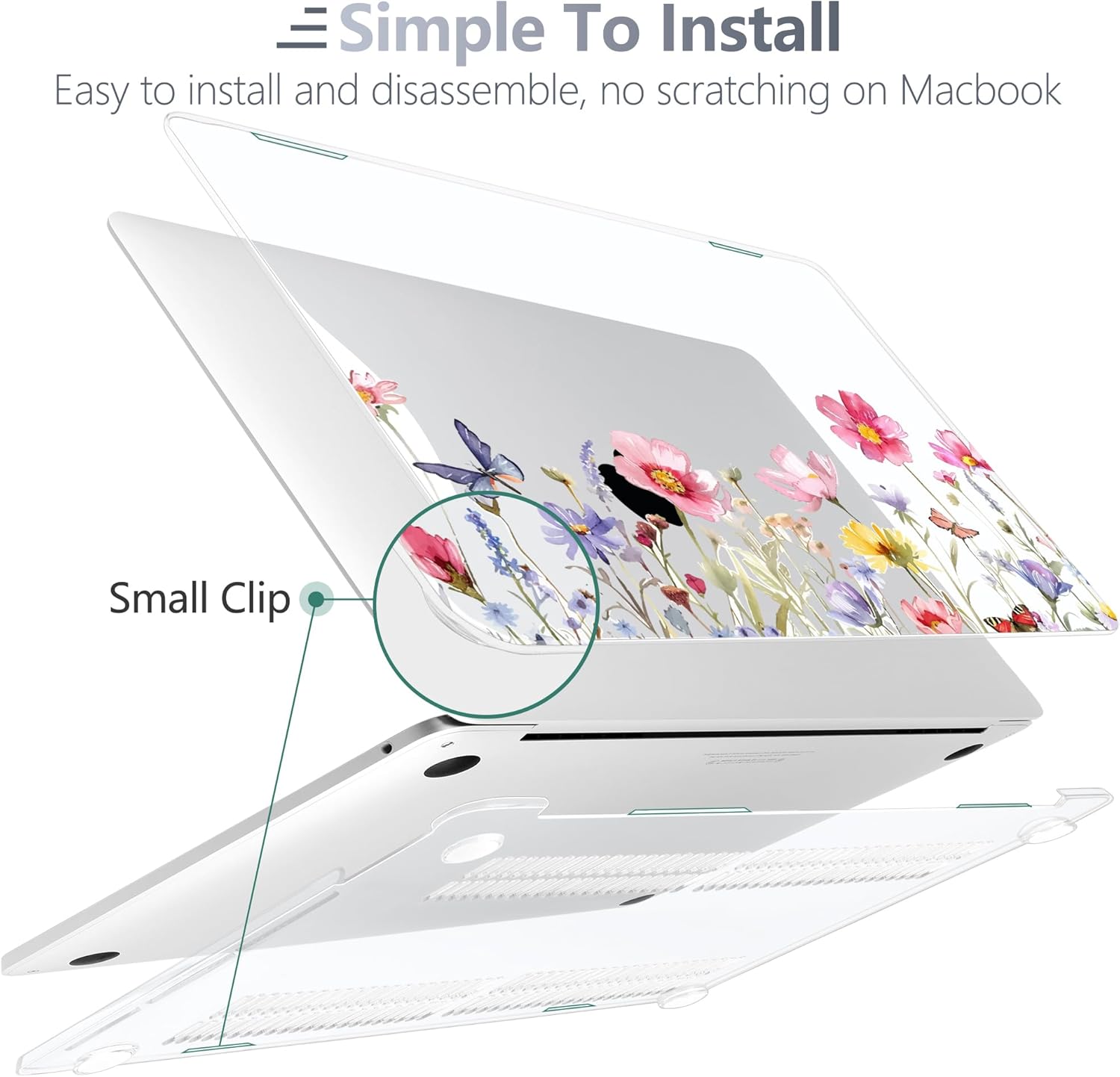 Batianda Case for M1 MacBook Air 13 Inch Model A2337 A2179 A1932 2021 2020 2019 Release,Lovely Creative Series Design Hard Shell with Keyboard Cover & Screen Protector, Spring Flowers