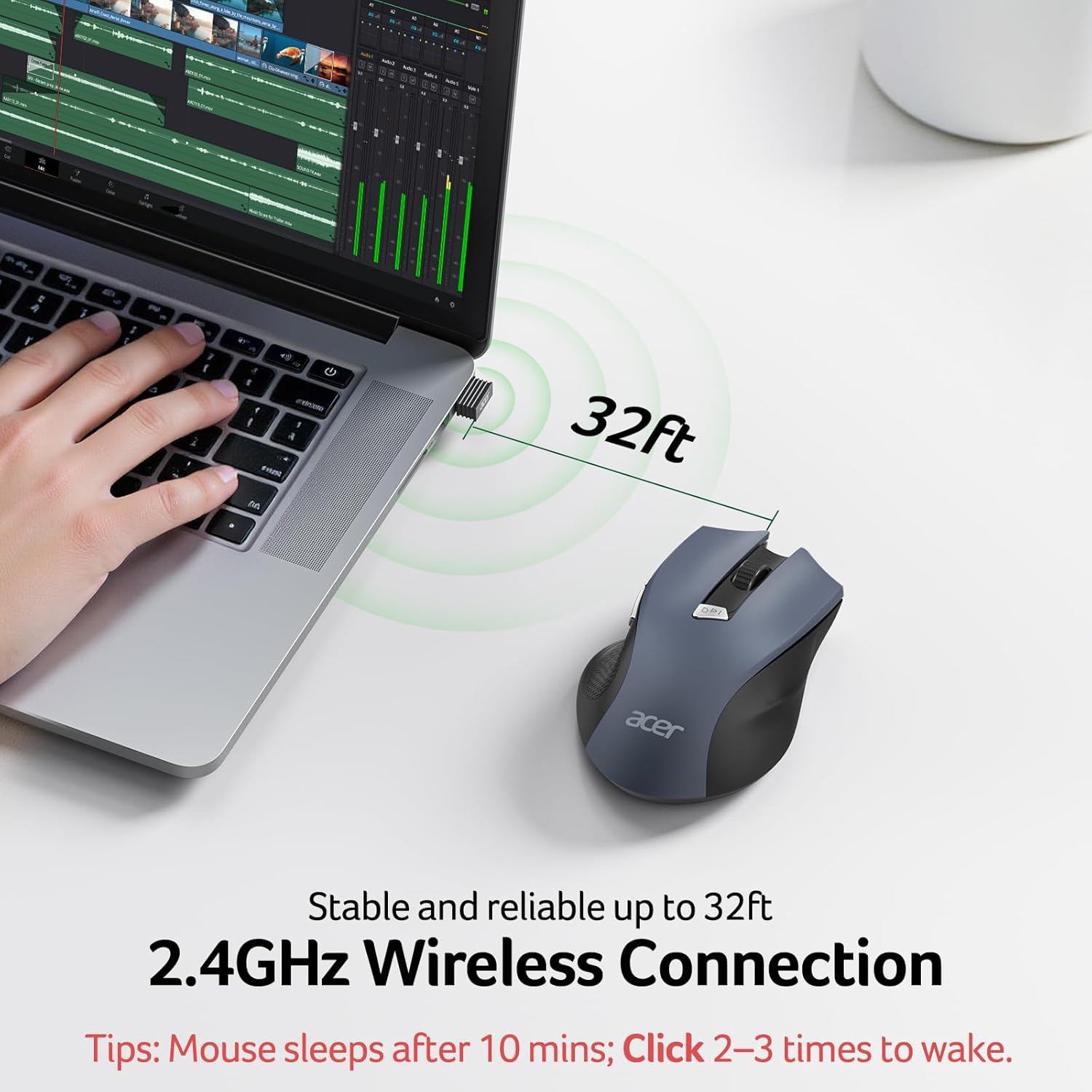 acer Wireless Mouse for Laptop, 2.4GHz Computer Mouse 3 Adjustable DPI Office Cordless USB Mice with USBA Receiver, 6 Buttons, 1600 DPI, Medium to Large Sized Hands Compatible with PC, Laptop, Desktop