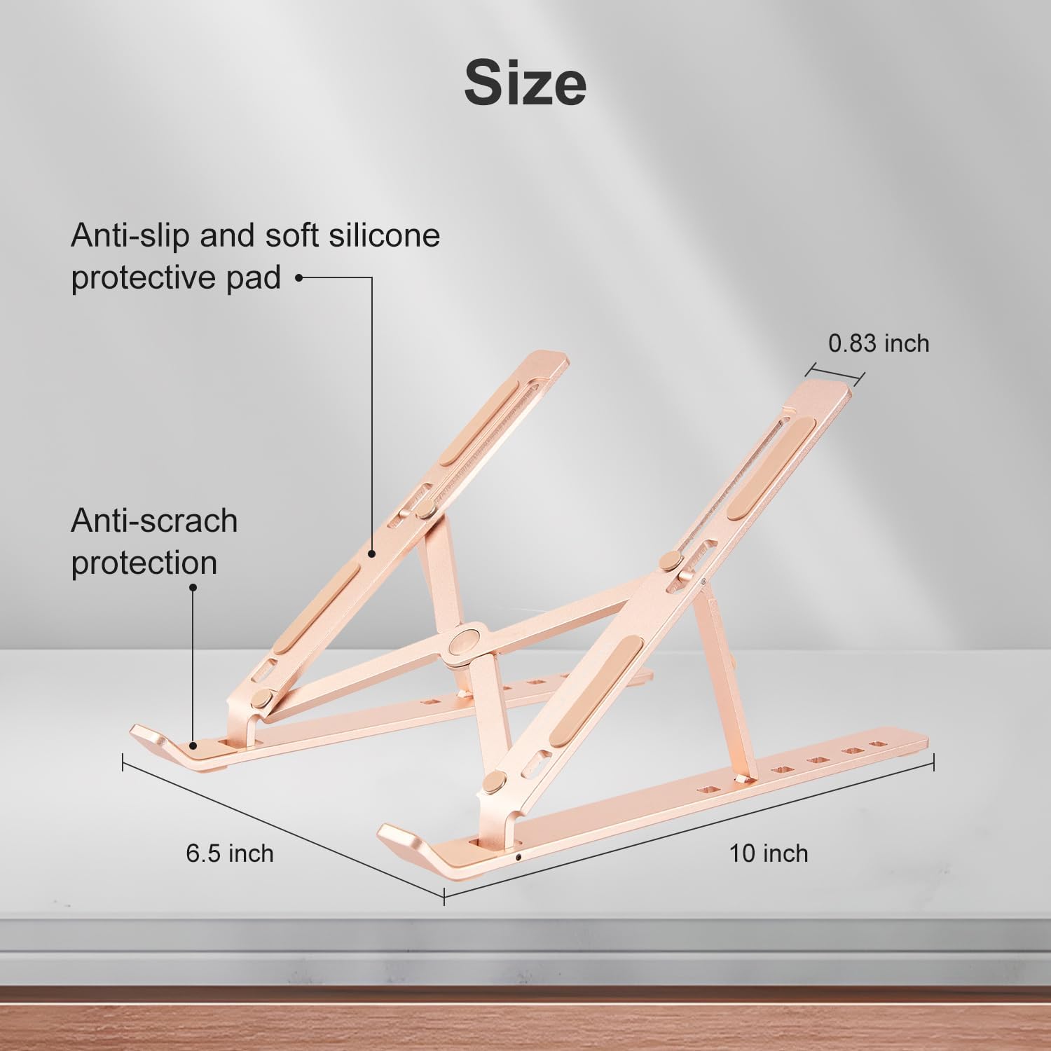 Ergonomic and Foldable Laptop Stand for Desk, Adjustable Riser, Fits All Laptops and Notebooks up to 17,Ultra-Thin,Ventilated Cooling,ABS+Silicone,Gold.